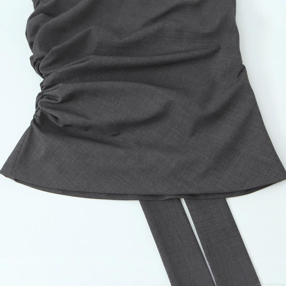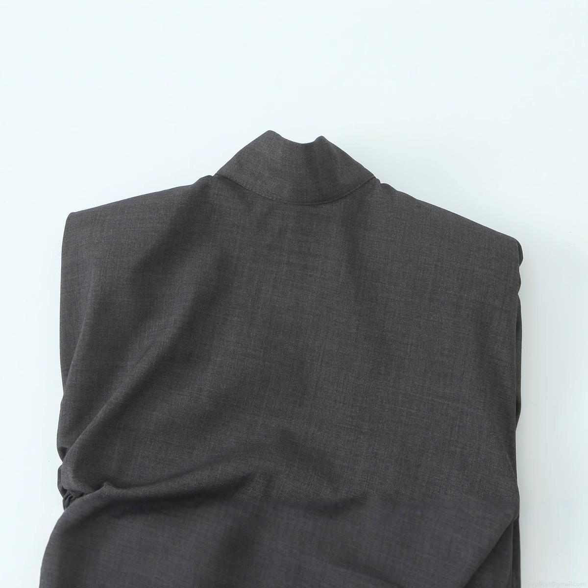 Women's Elegant Padded Shoulder Sleeveless High Neck Top Ruched Side Sexy Slim Fit Polyester Blend Blouse Party Tank Top Casual Lady Style Grey
