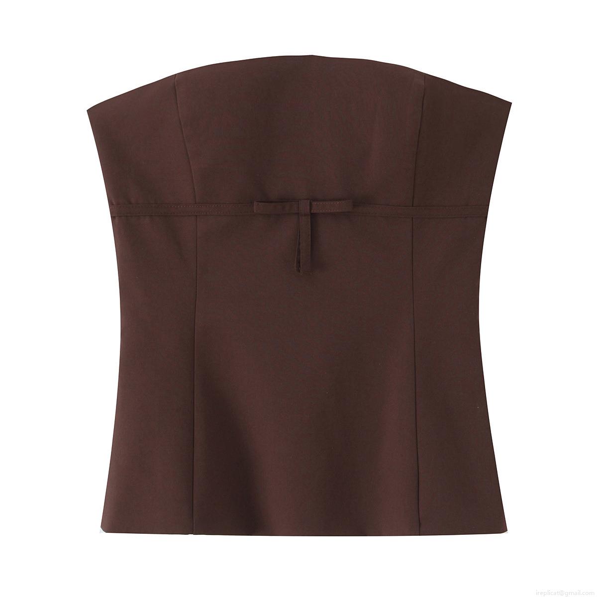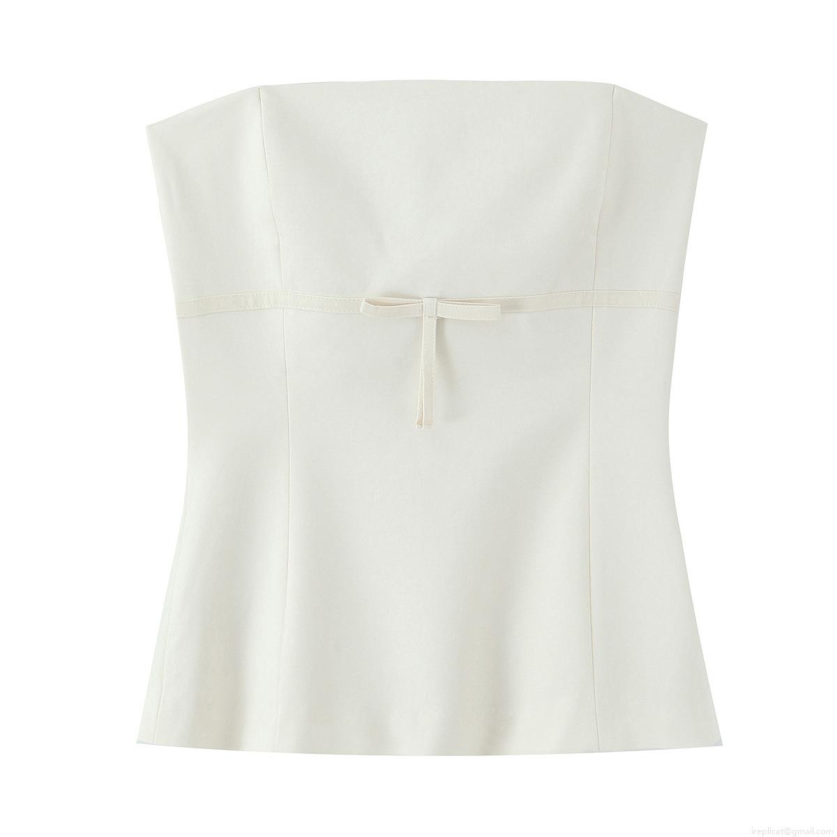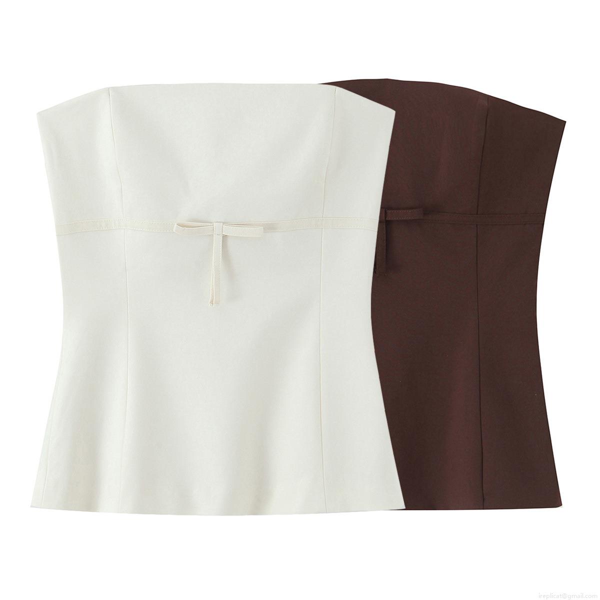 • Women's Elegant Polyester Blend Tube Top Strapless Slim Fit Solid Color Top With Bow Decor And Side Zipper For Party Vacation Daily Wear