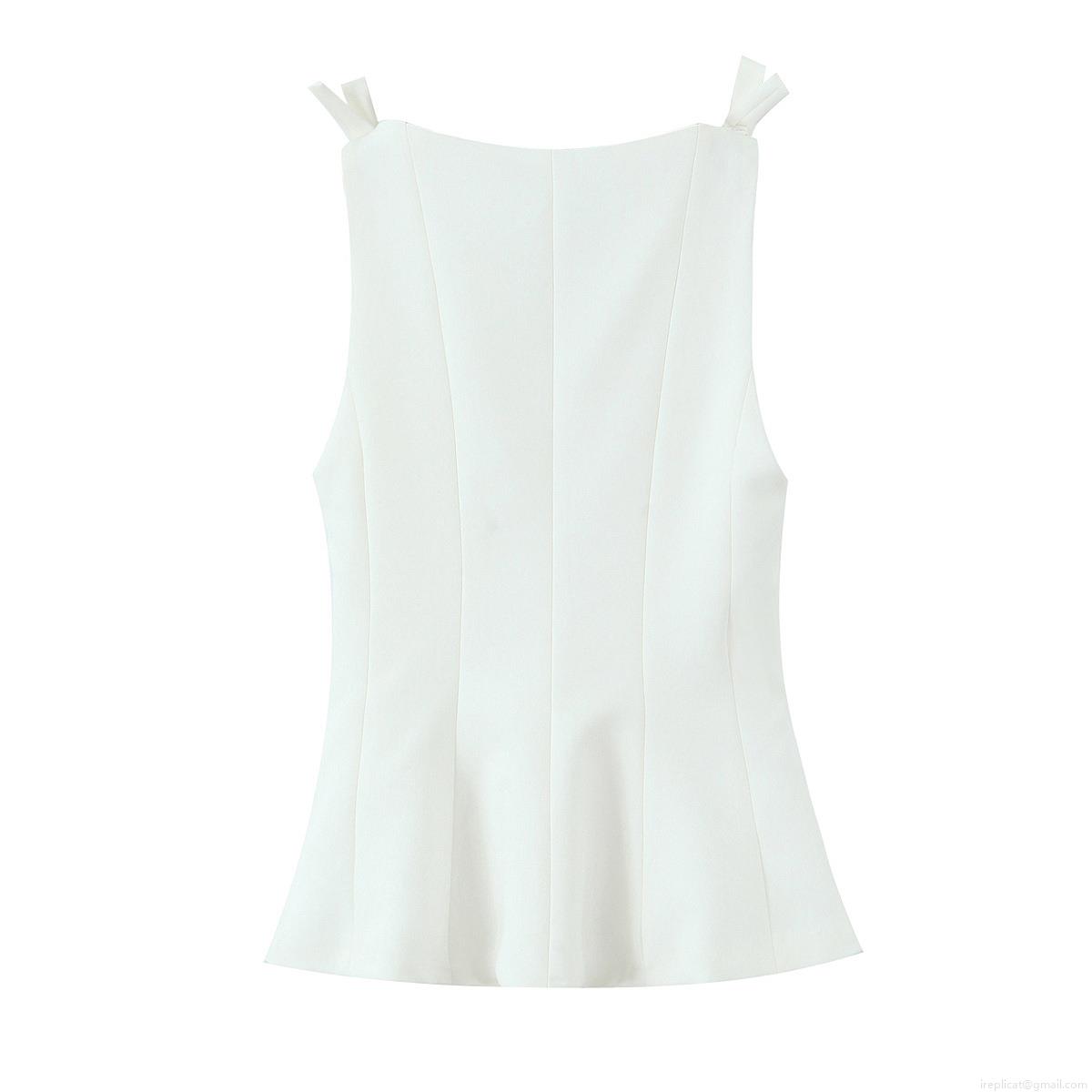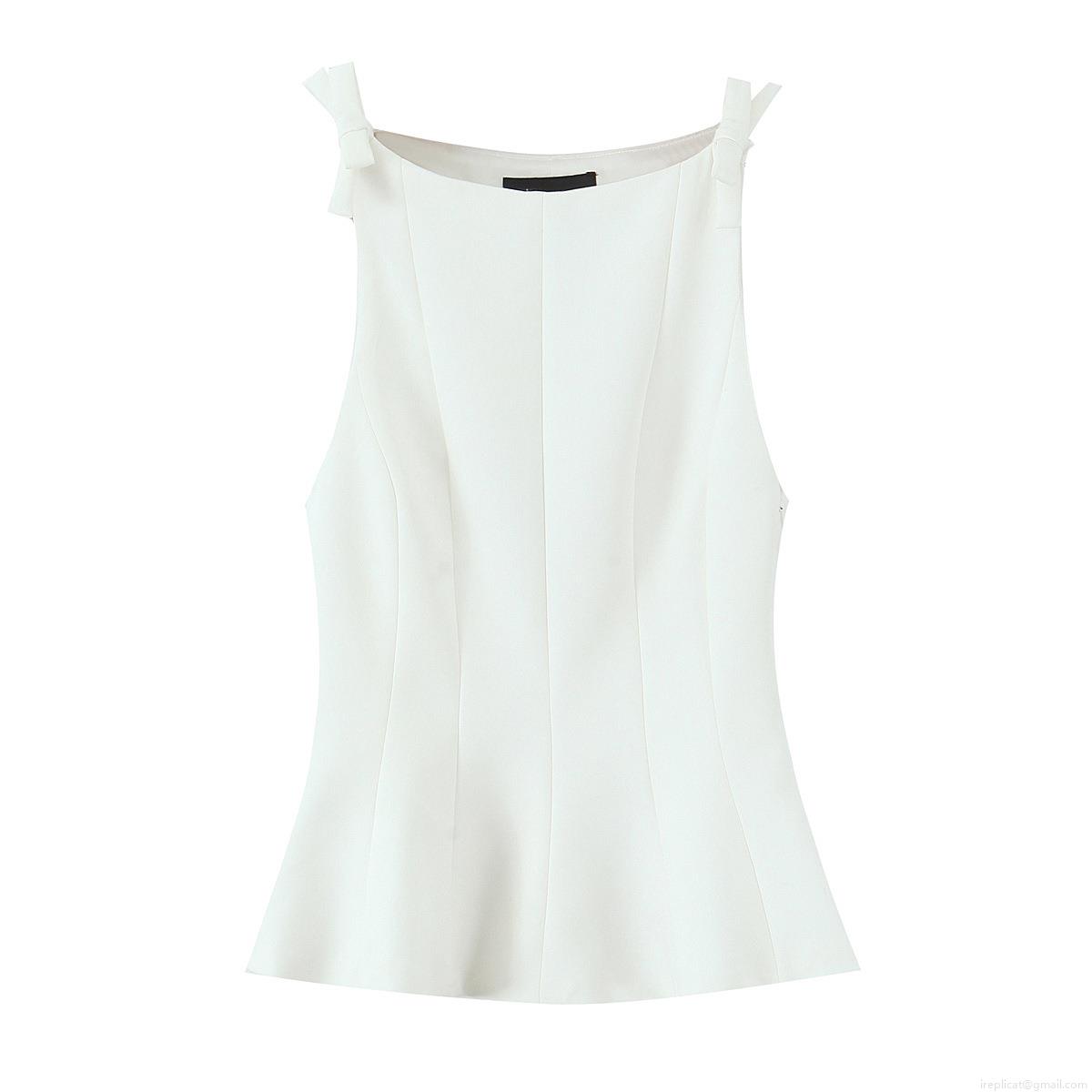 • Women's Elegant Polyester Sleeveless Bowknot Tank Top Slim Fit Peplum Ruffle Hem Solid Color Vest For Daily Party Wear