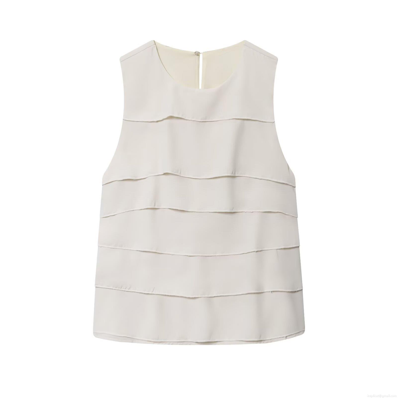 • Women's Elegant Ruffle Sleeveless Top Layered Chiffon Tank Top Solid Color Round Neck Pullover Blouse For Summer Casual Party Clothing