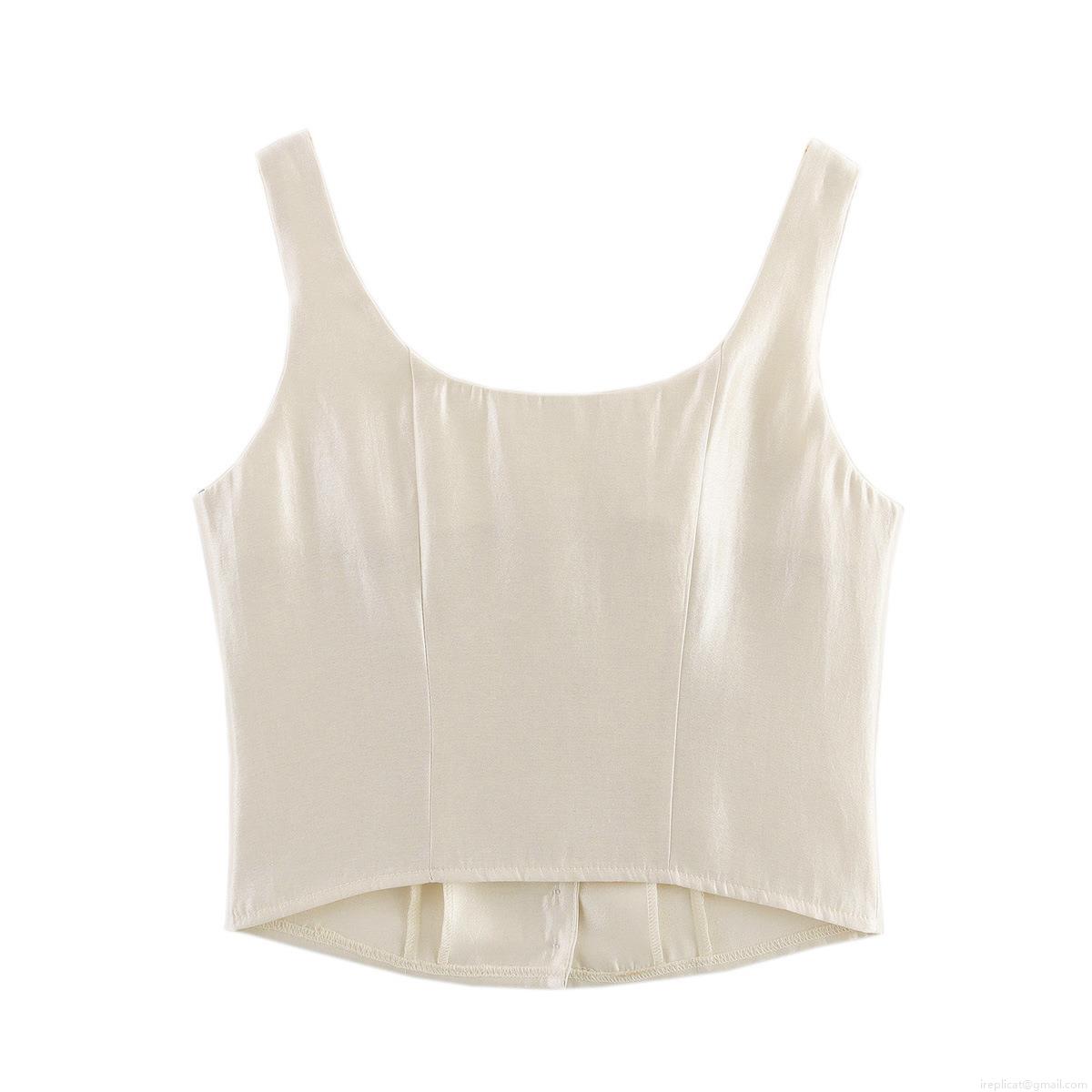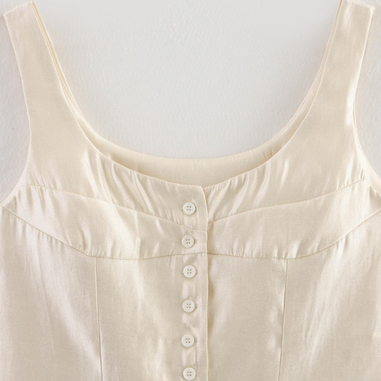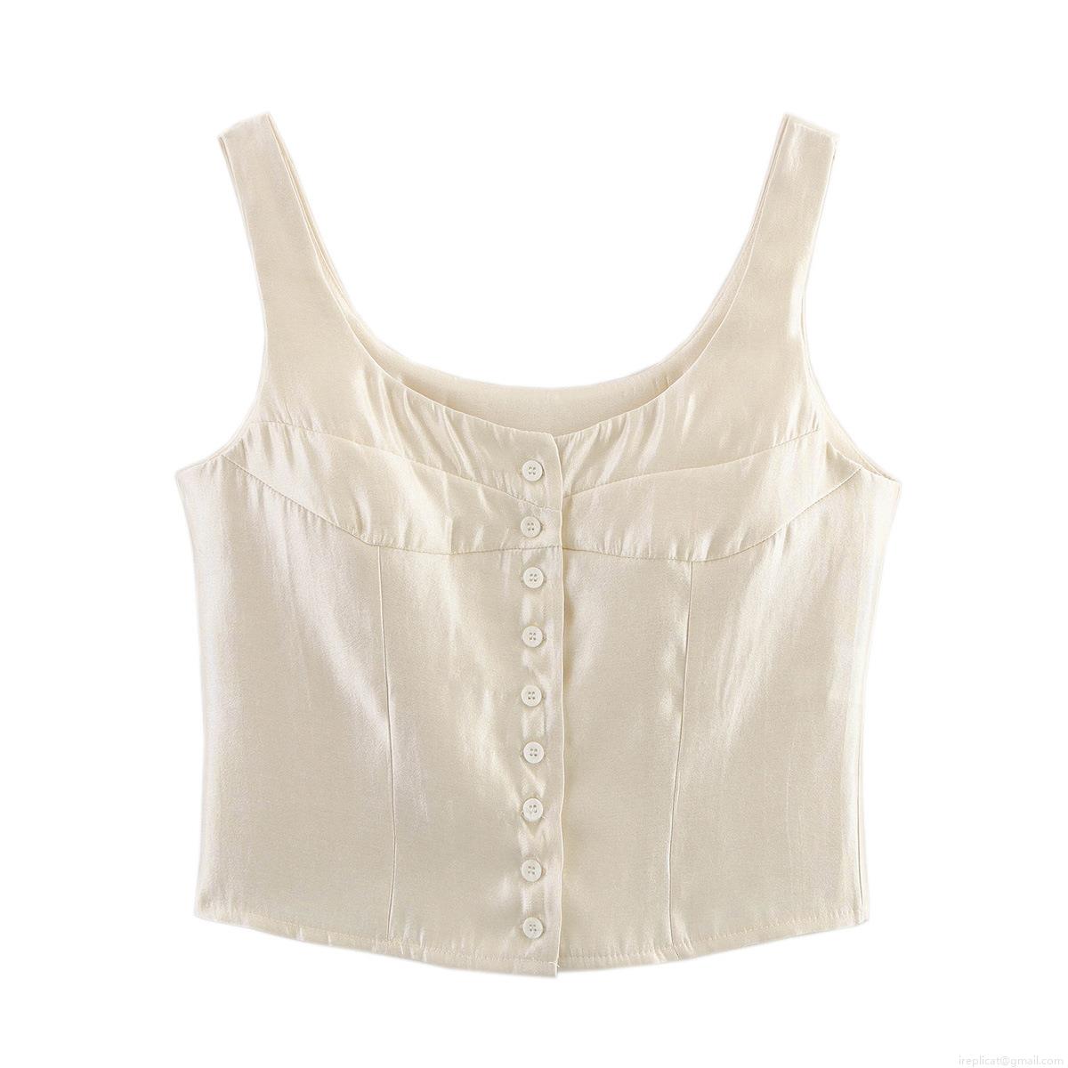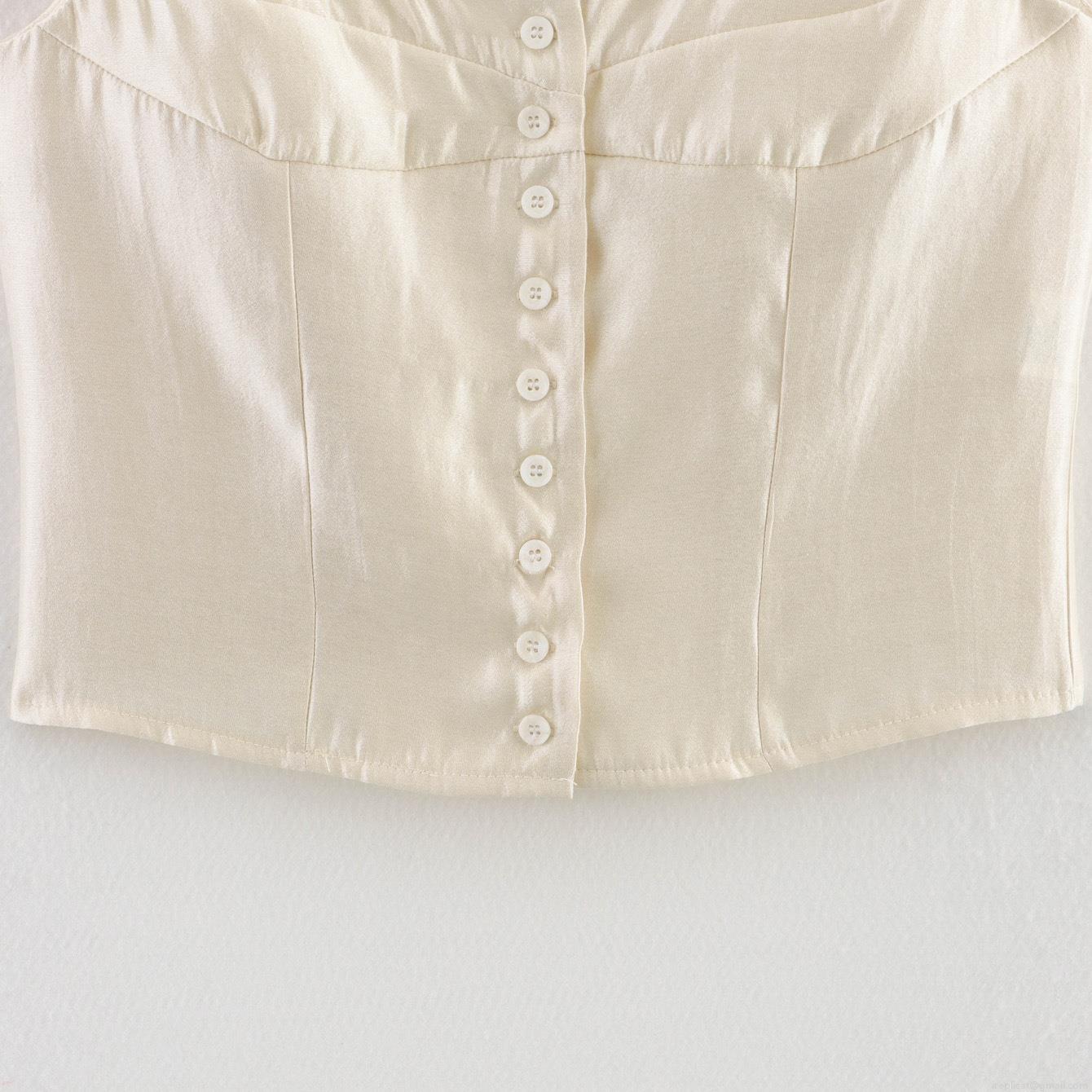 • Women's Elegant Satin Sleeveless Tank Top With Front Buttons Polyester Silk Texture Single Breasted Slim Fit Solid Color Summer Casual Top