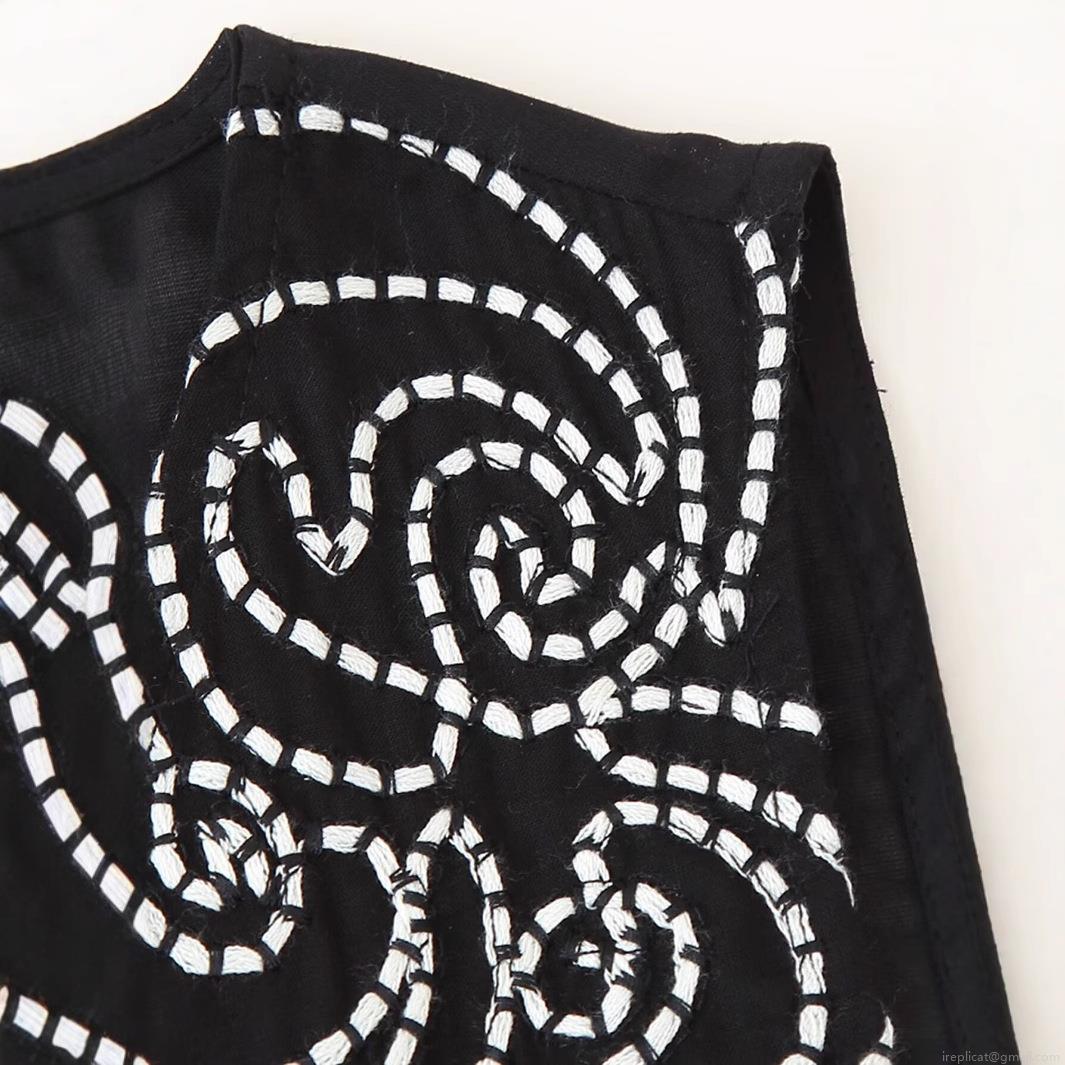 Women's Elegant Sleeveless V-Neck Peplum Hem Tank Top With White Spiral Embroidery Design Fashion Black Vest Top For Summer Party Dating