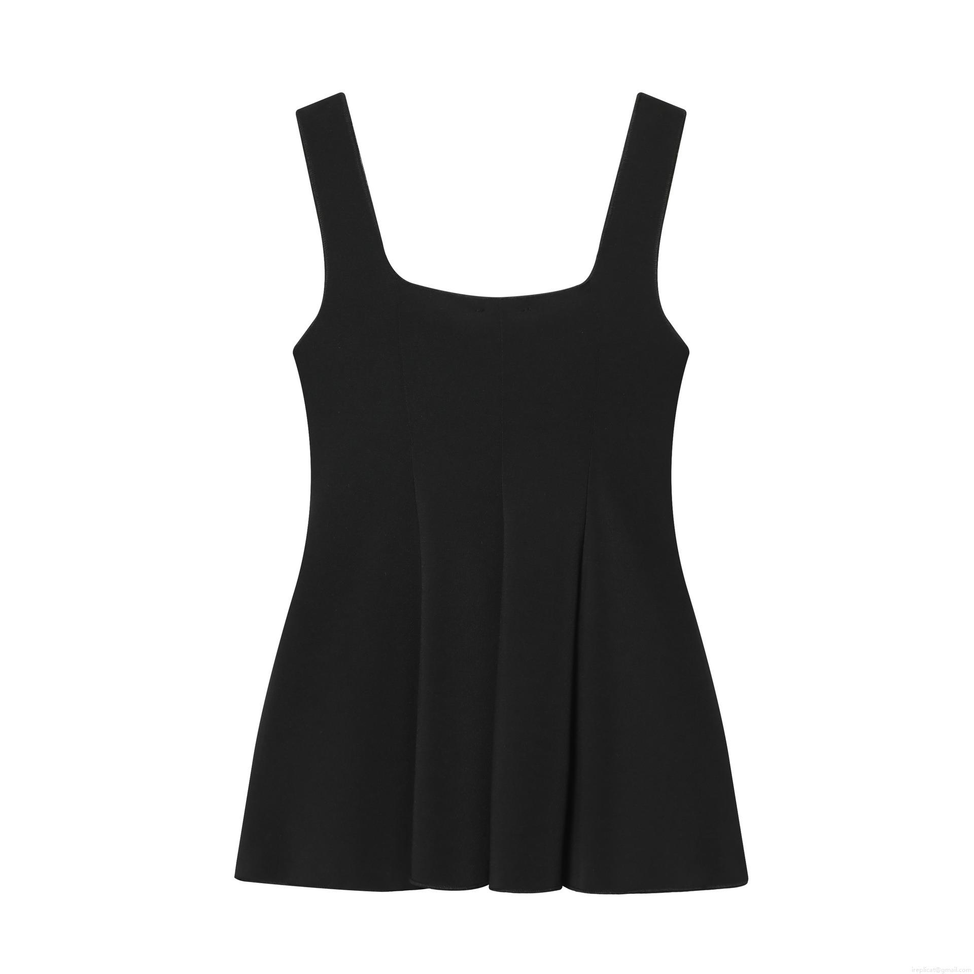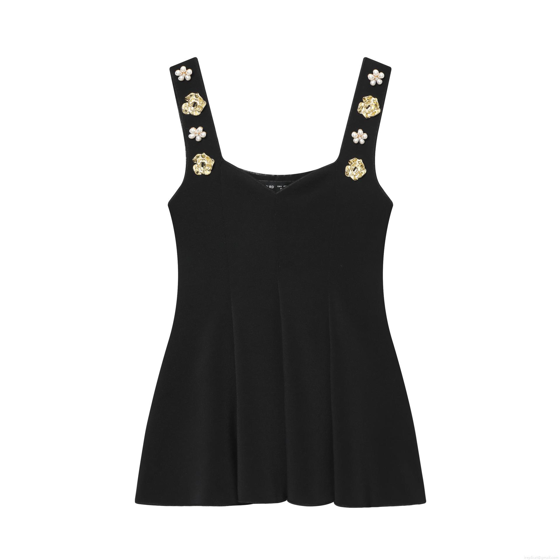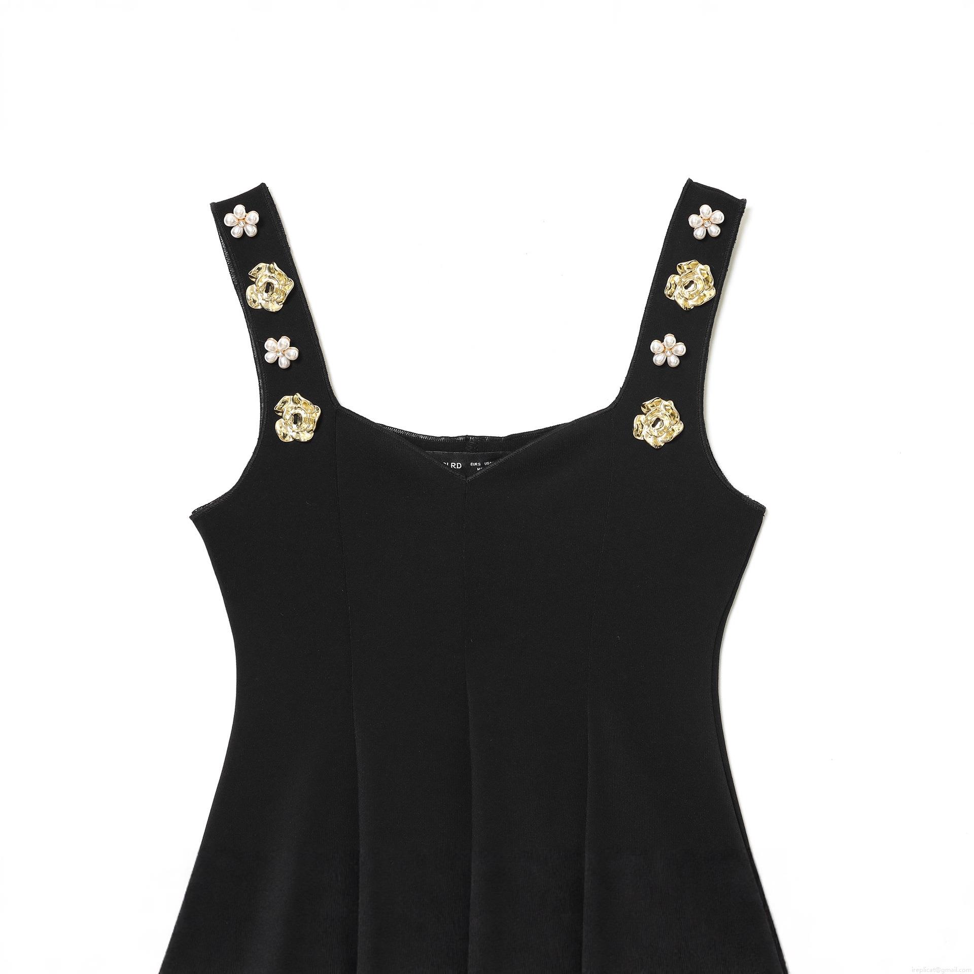 • Women's Elegant Square Neck Sleeveless Tank Top With 3D Pearl Flower Straps Flared Hem Stretchy Knit Cami For Party Dating