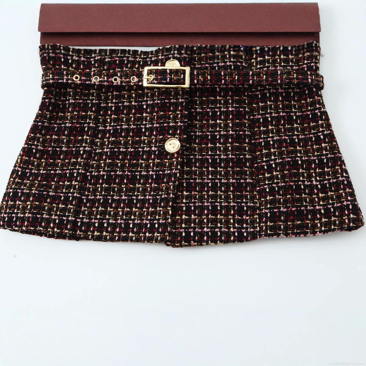 Checkered Pattern, Belt, Tweed, Metal Buckle, Button Decoration, Reverberation Texture