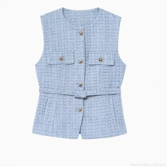 • Women's Elegant Tweed Sleeveless Vest Round Neck Button Down Tank Top With Matching Belt Shiny Sequin Waistcoat For Office Party Lady Outerwear