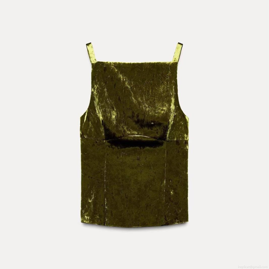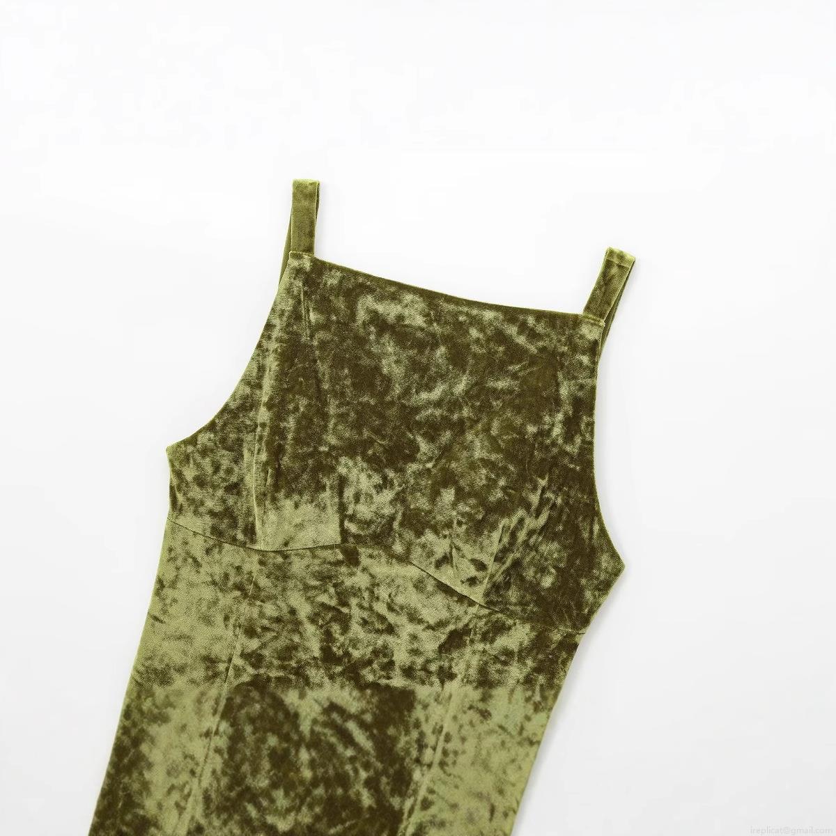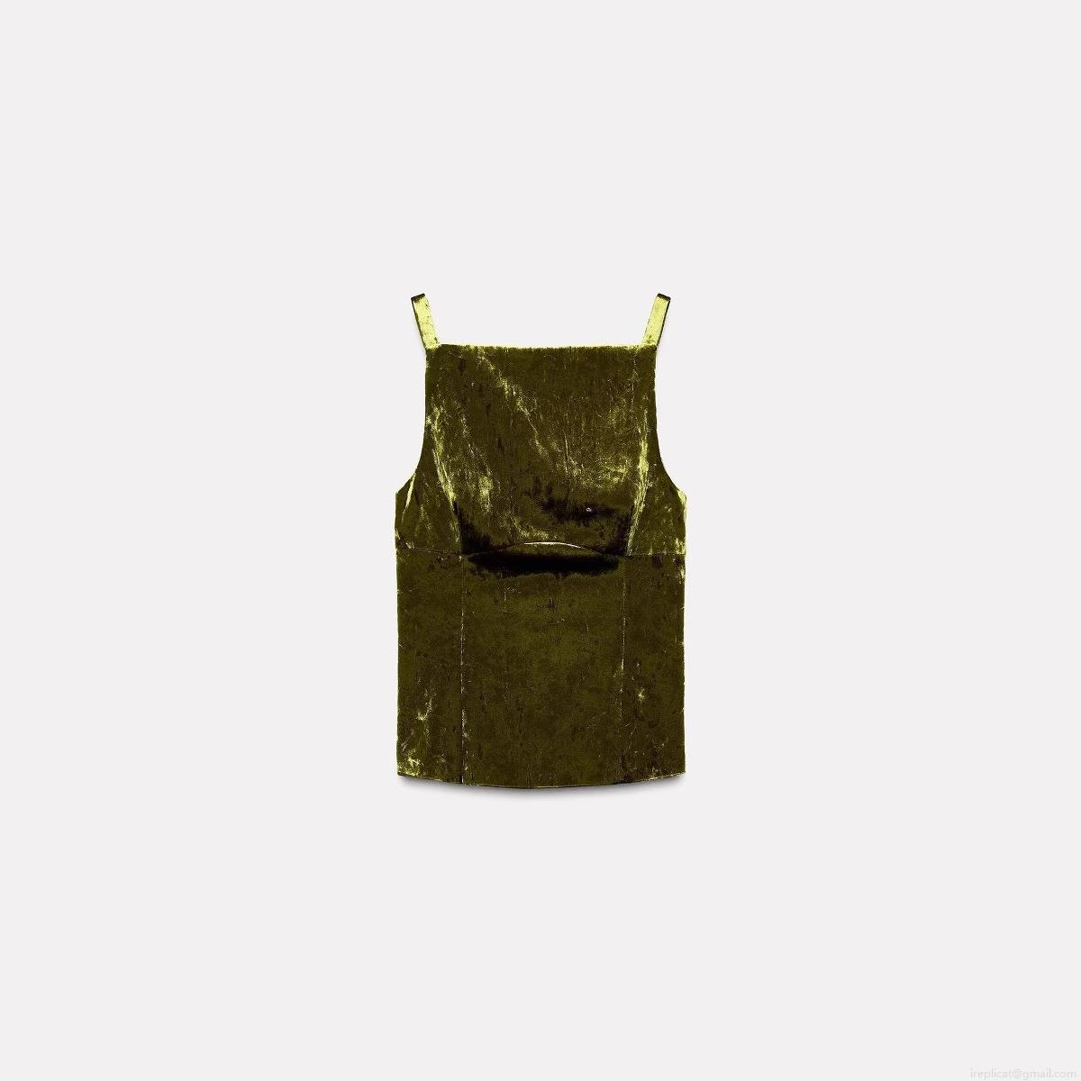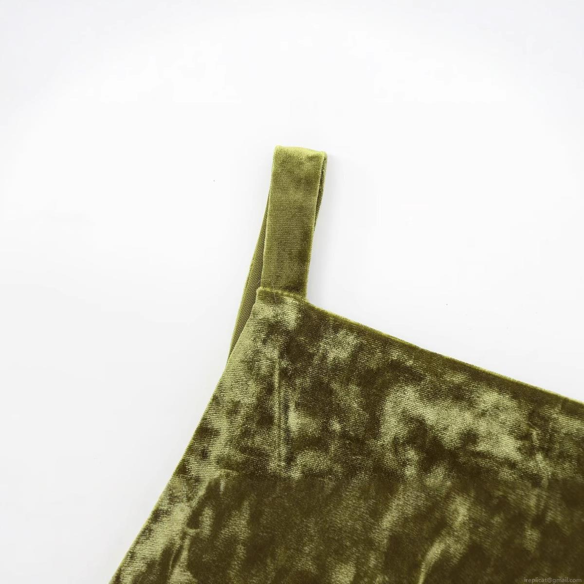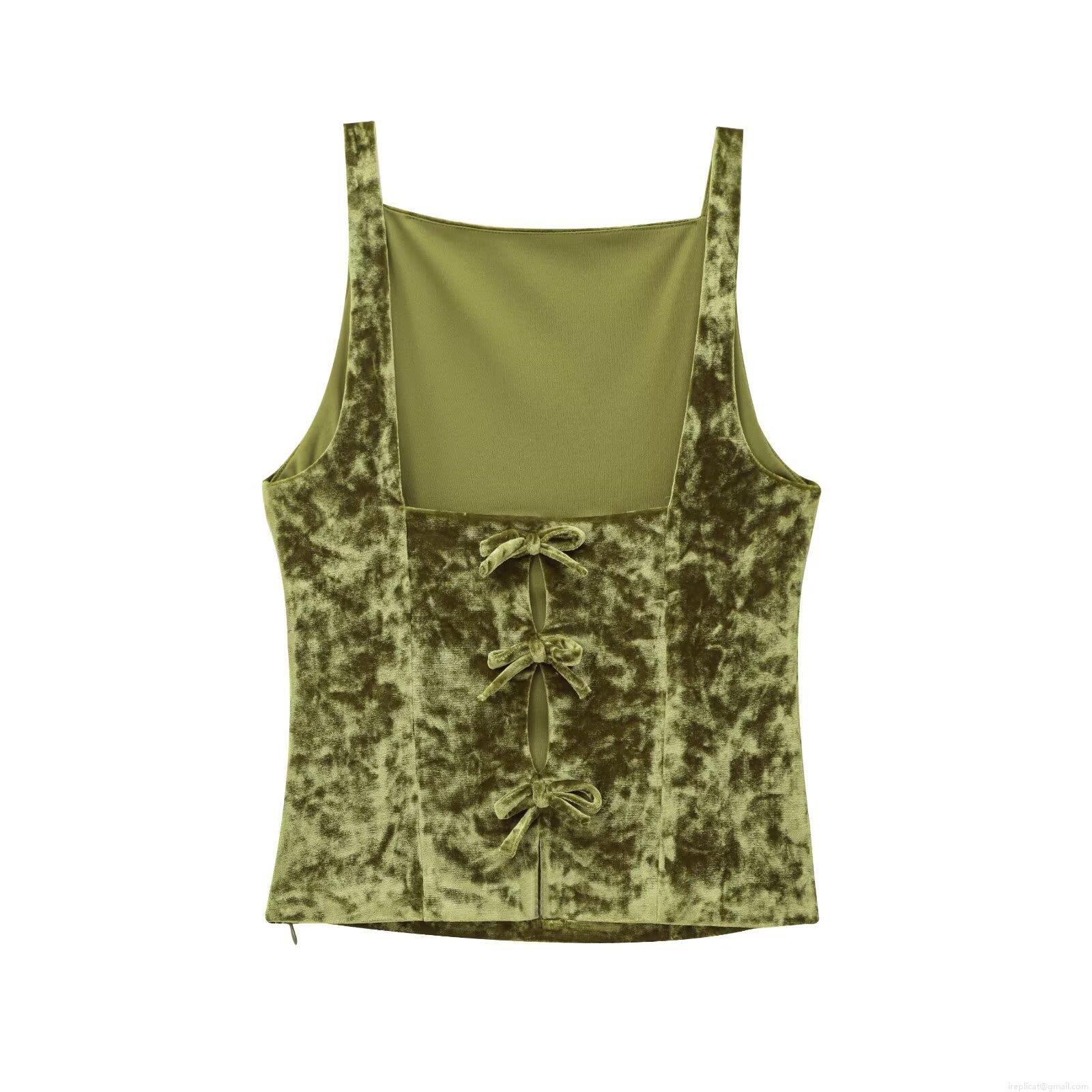 • Women's Elegant Velvet Cami Top With Bow Back Detail Square Neck Slim Fit Short Vest Solid Color Army Green Socialite Style Camisole For Party Dating