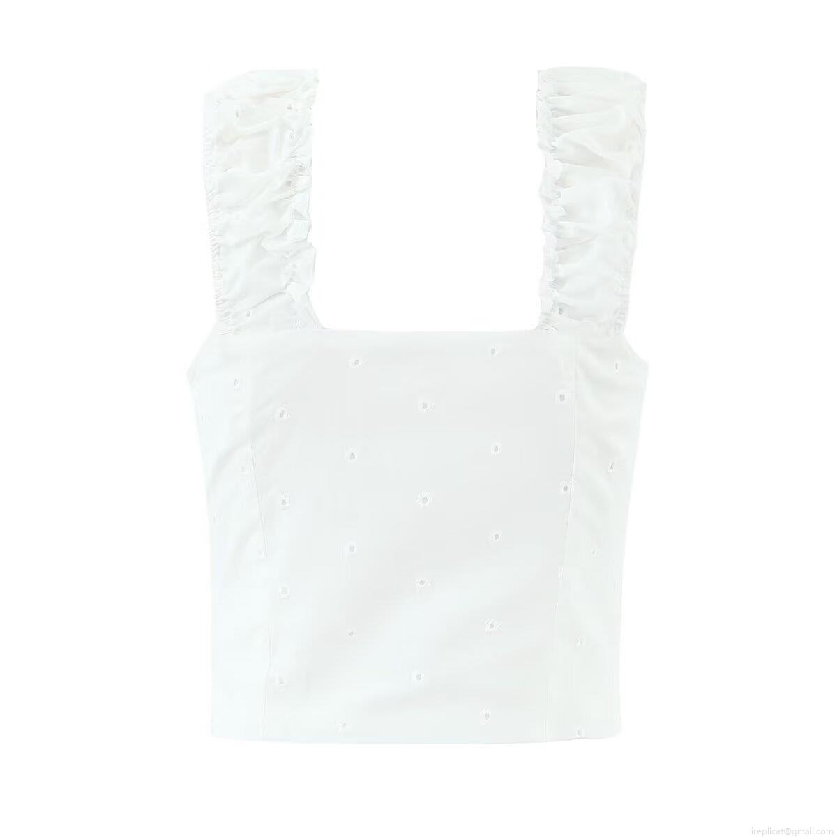 Women's Eyelet Embroidery 100% Cotton Camisole Top Square Neck Ruffle Strap Button Front Crop Tank Top Sexy Summer Streetwear For Women