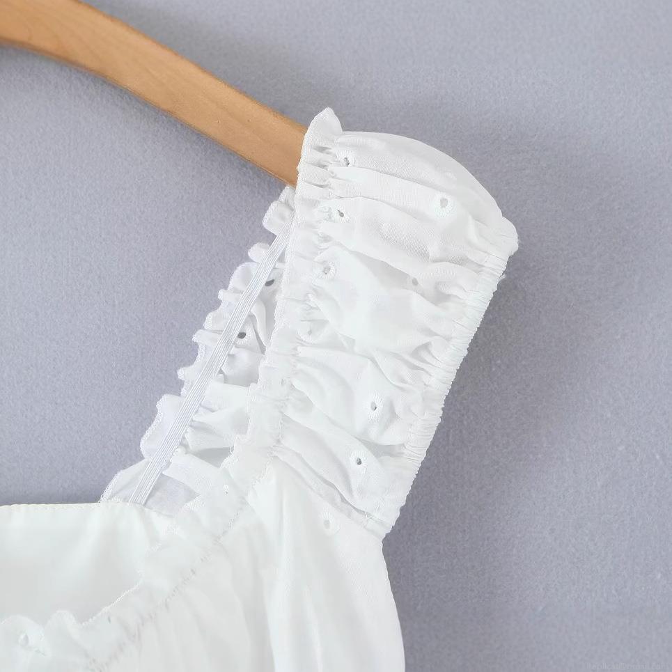 Wood Ear Edge, Hollowed-out Eyelets, Retro Square Neck