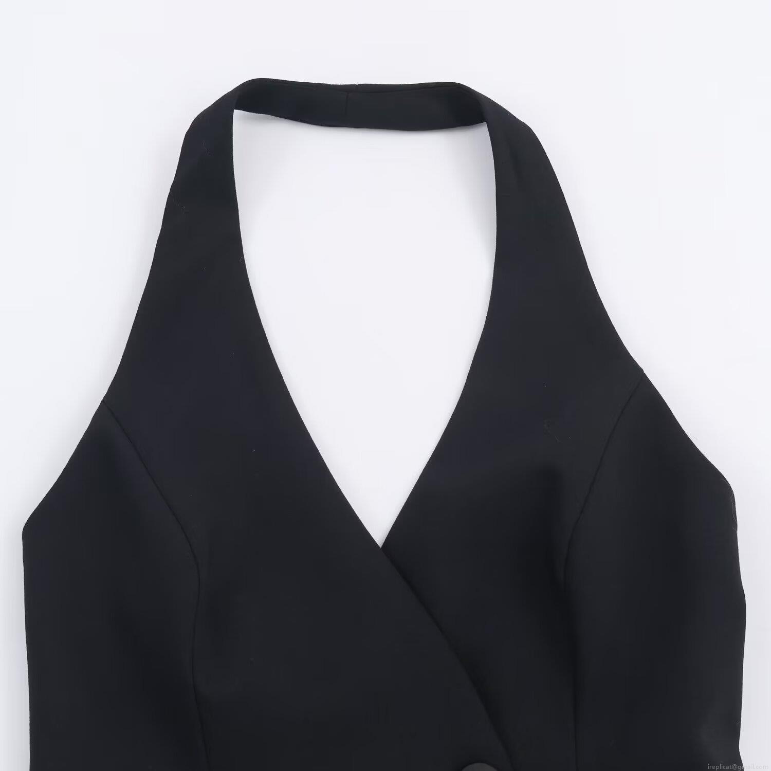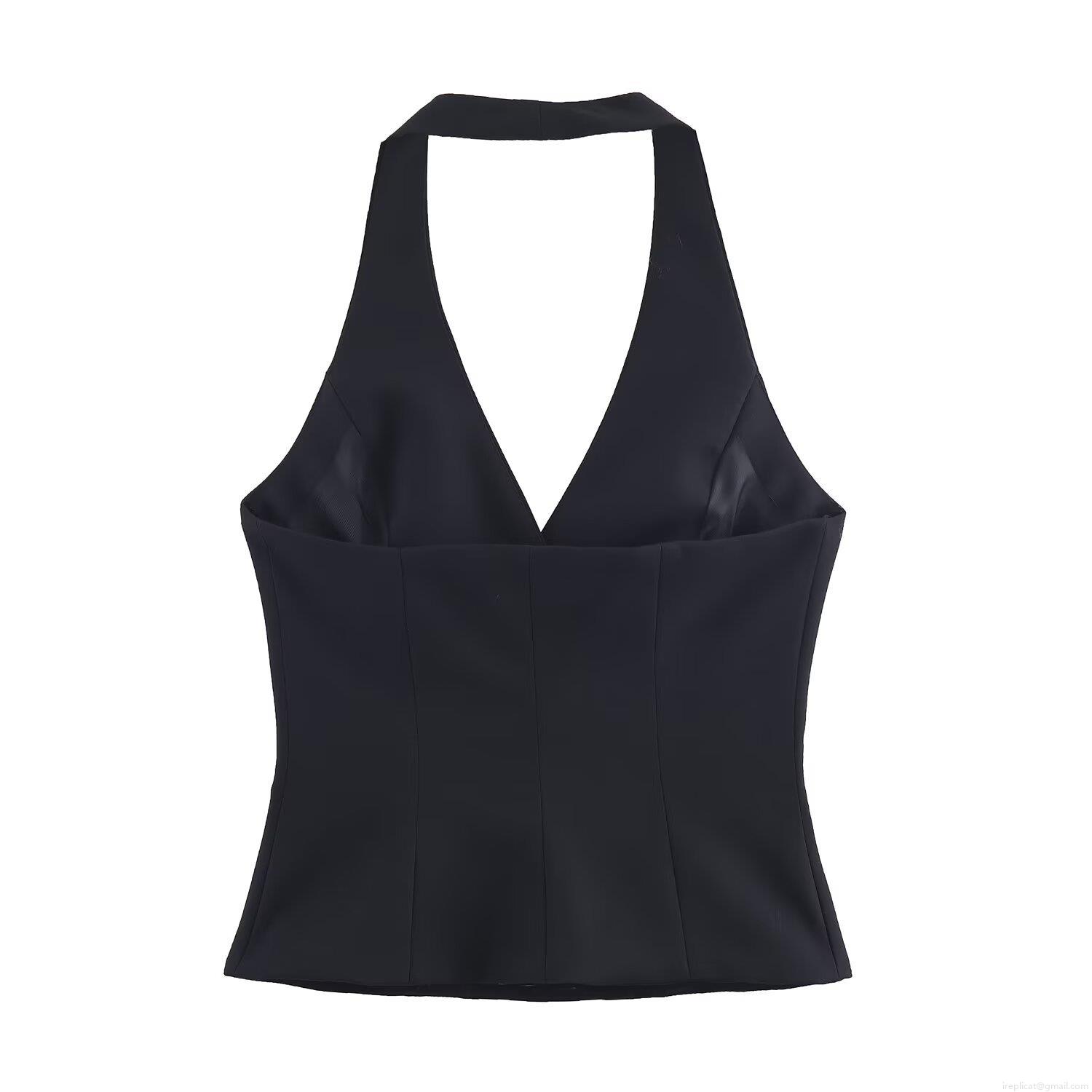 • Women's Fashion Halter Neck Waistcoat Vest Elegant Solid Color Slim Fit Double Breasted Tailcoat Top For Office Commute Evening Party Sleeveless Tank Top
