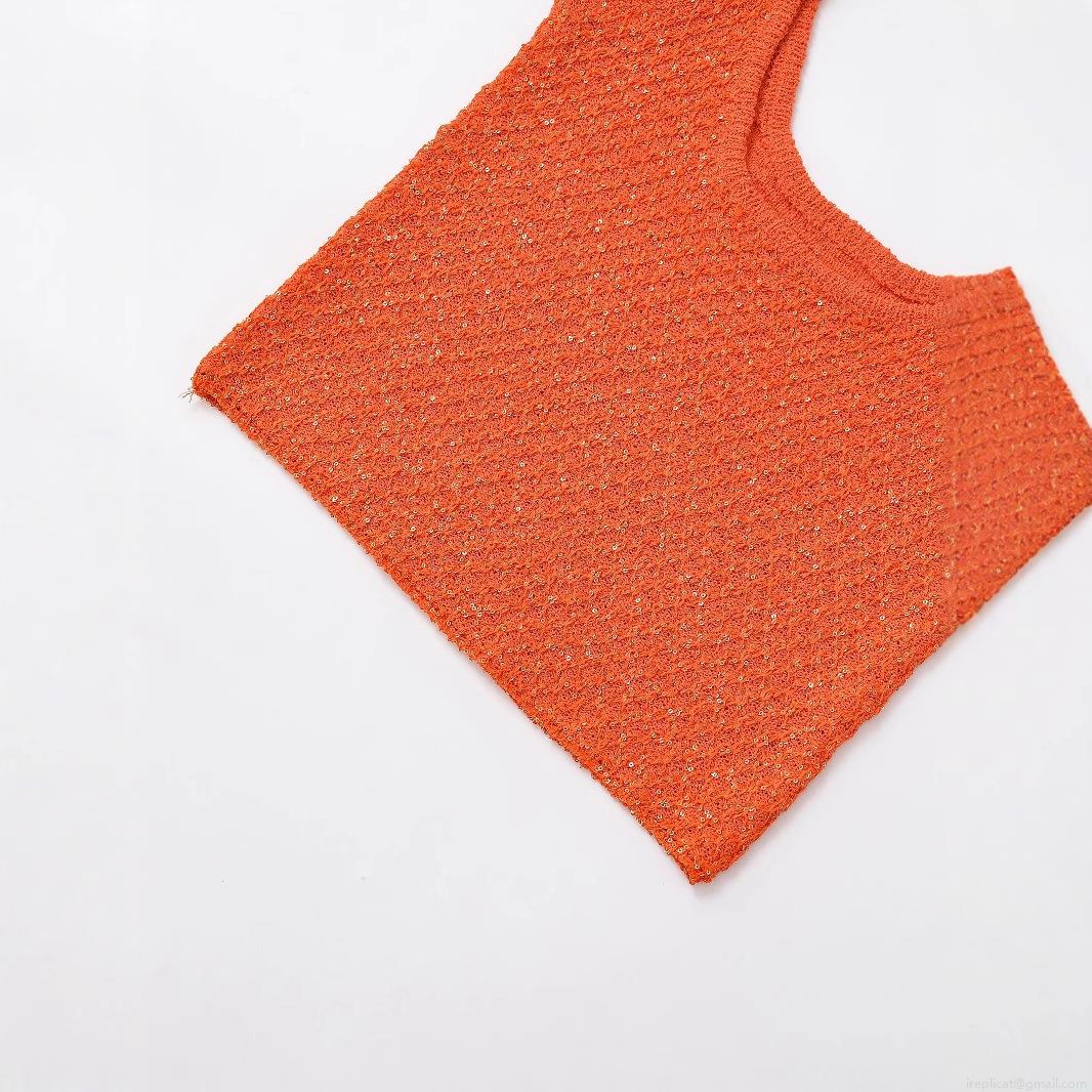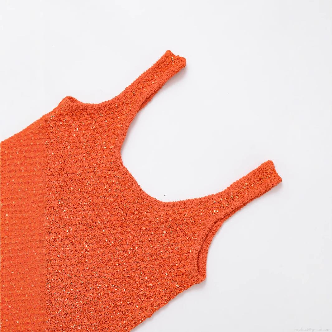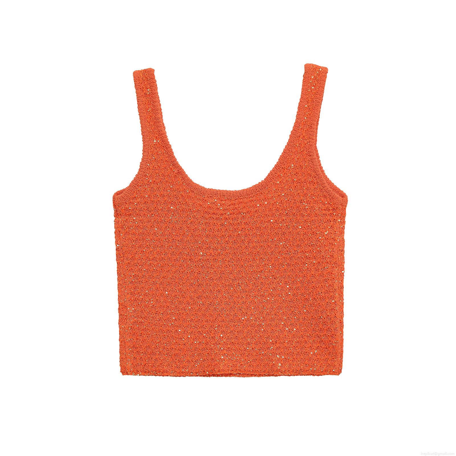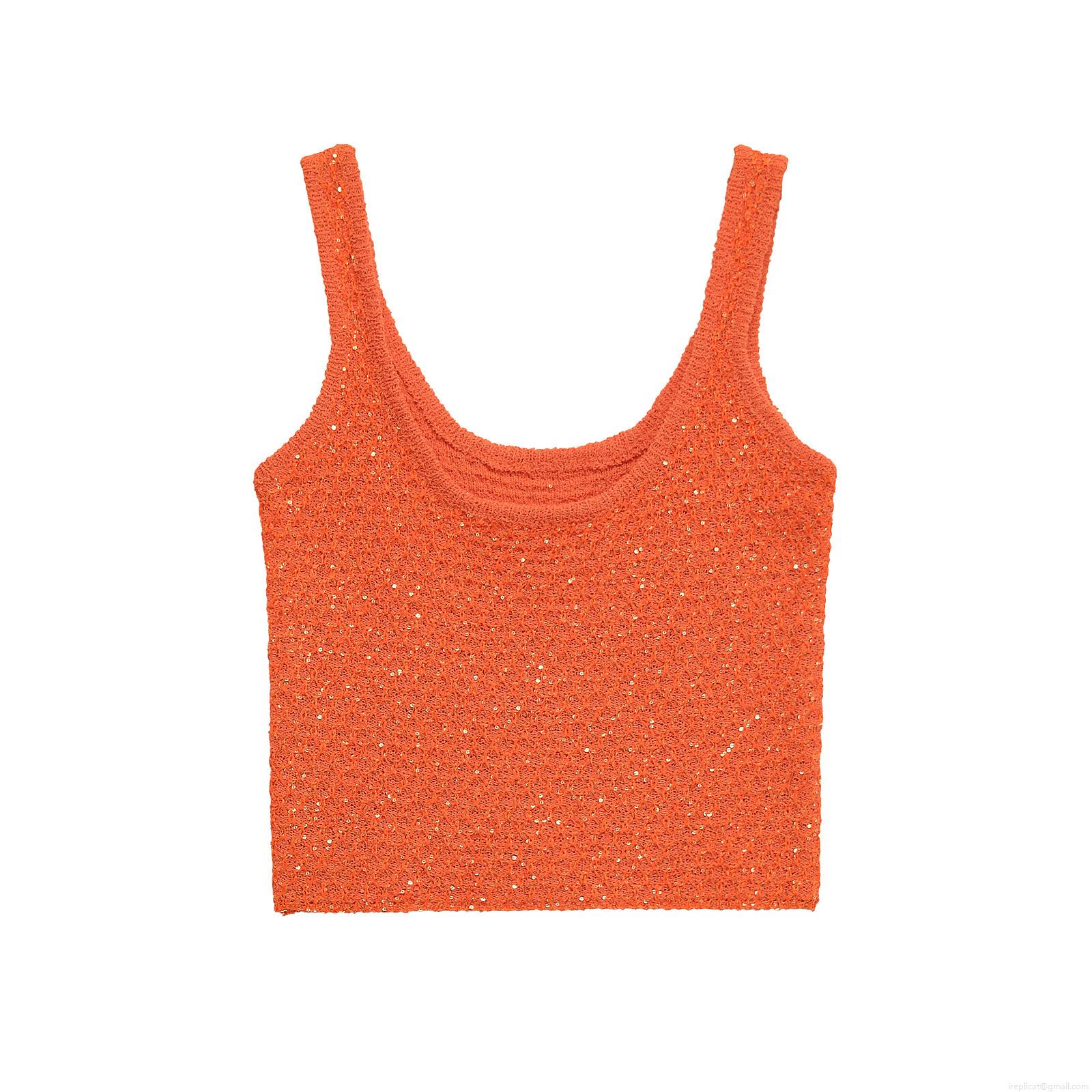 Women's Fashion Sequin Decorated Knit Sleeveless Tank Top Sexy Slim Fit U-Neck Crop Top For Party Vacation INS Style Lady