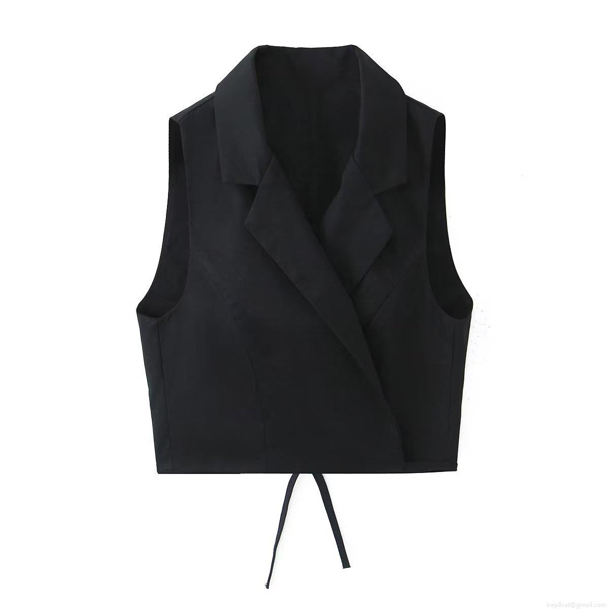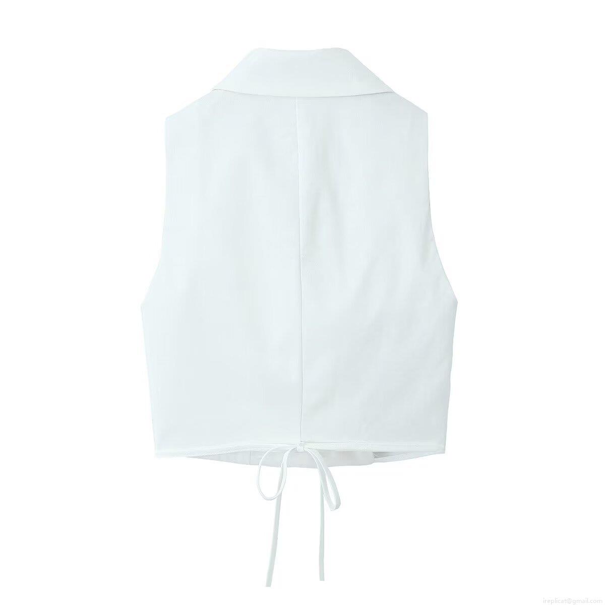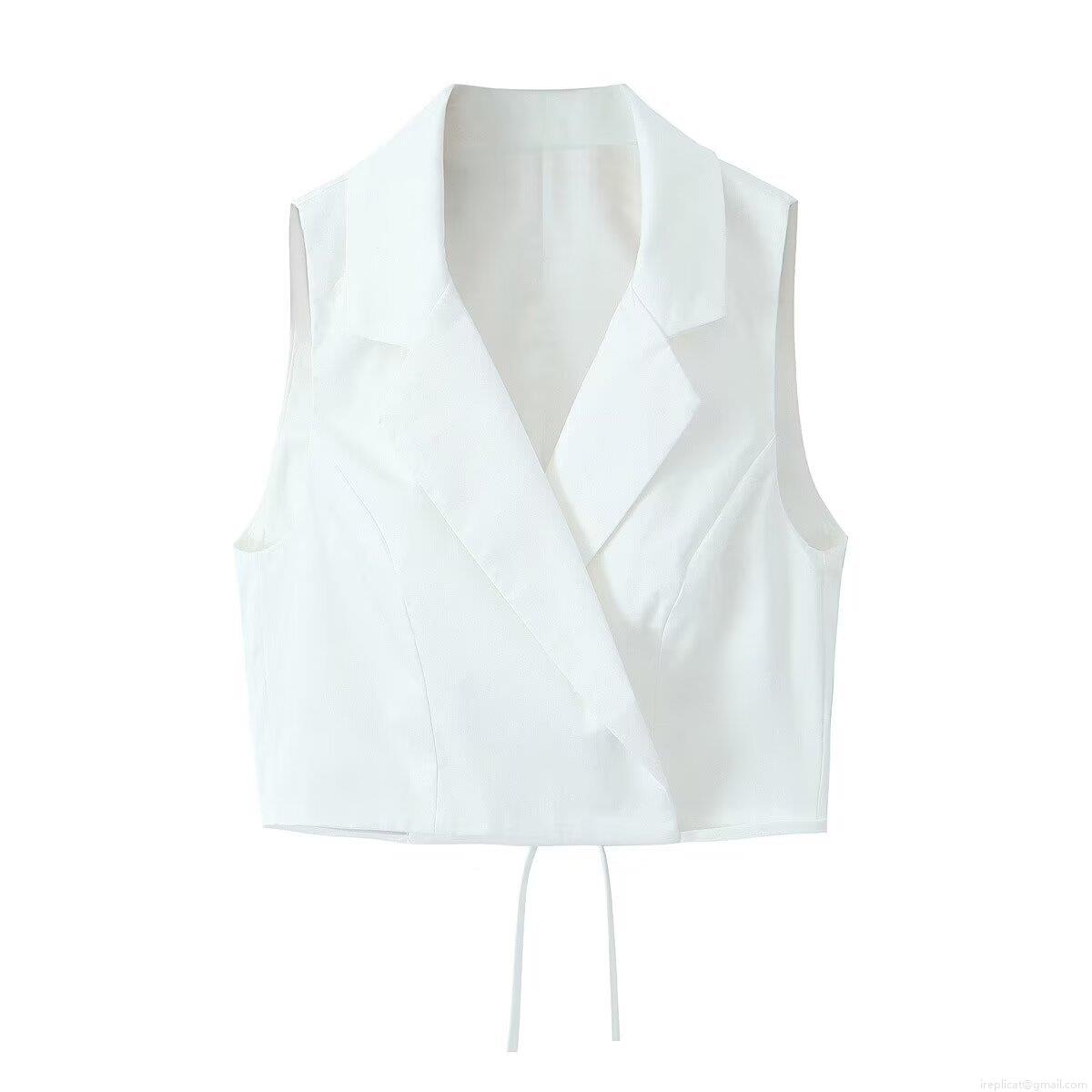 • Women's Fashion Sexy Slim Fit Suit Collar Sleeveless Cropped Vest Top Summer Tie Back Hem Solid Color Polyester Waistcoat For Streetwear Casual Daily