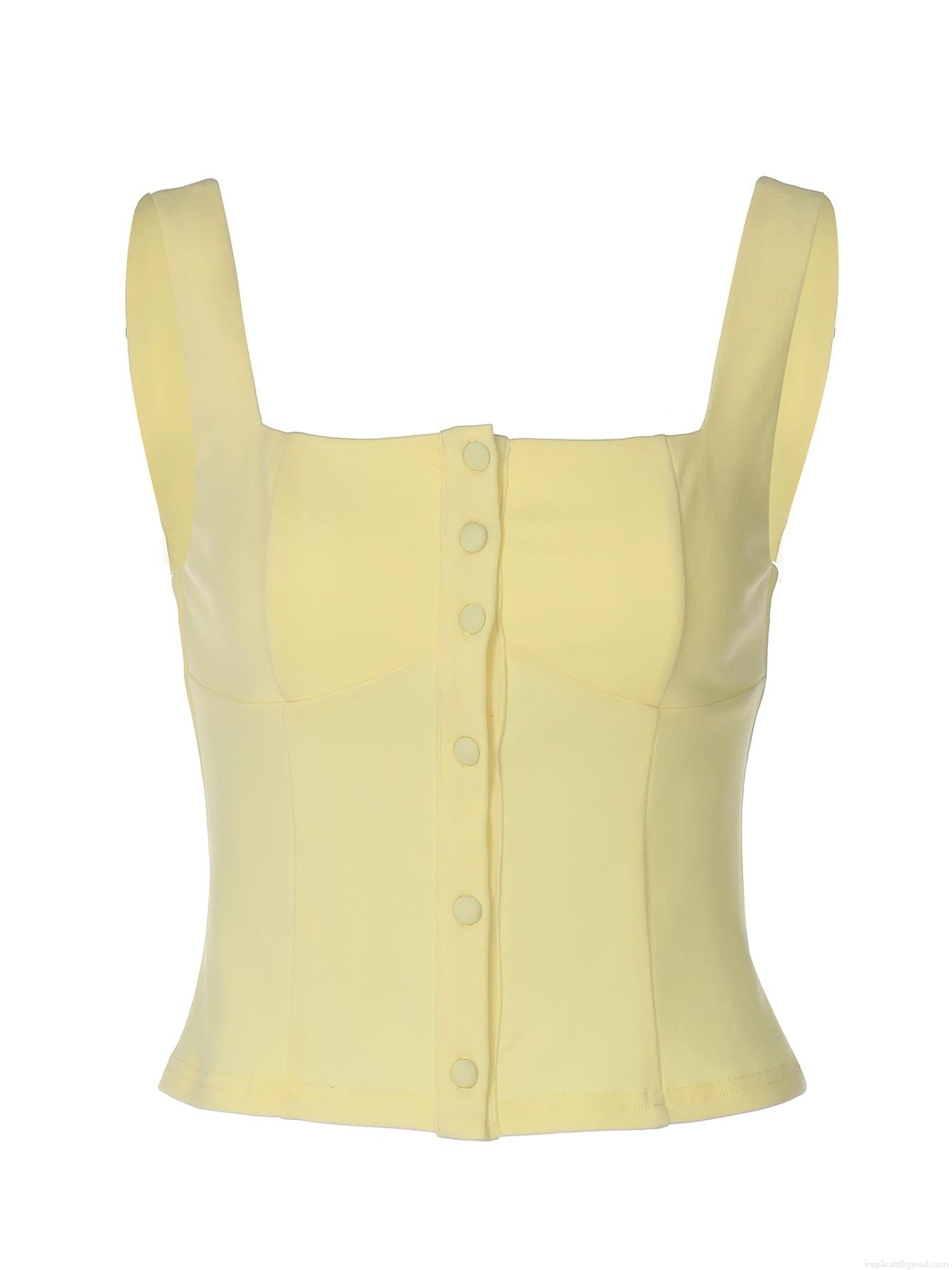 • Women's Fashion Slim Fit Square Neck Button Down Tank Top Sexy Corset Style Sleeveless Cropped Vest Polyester Spandex Blend Solid Color Summer Top