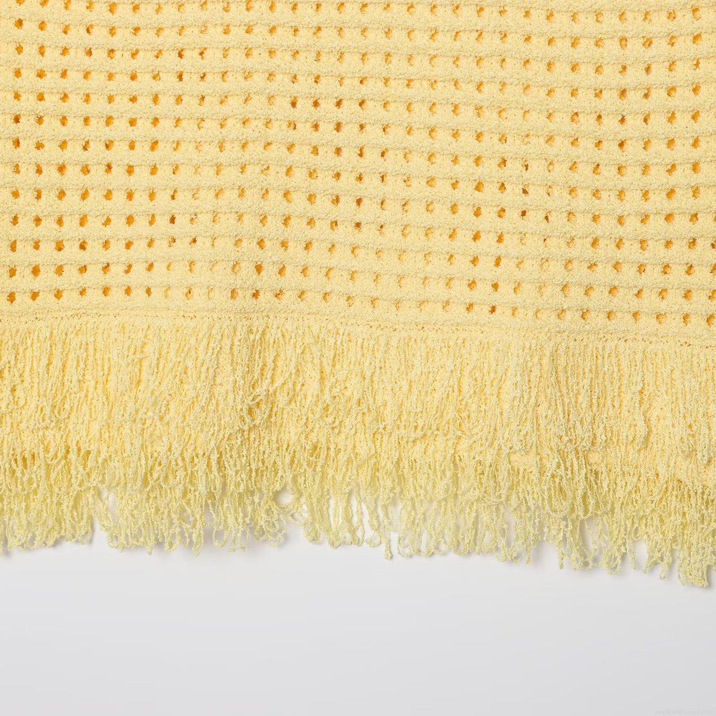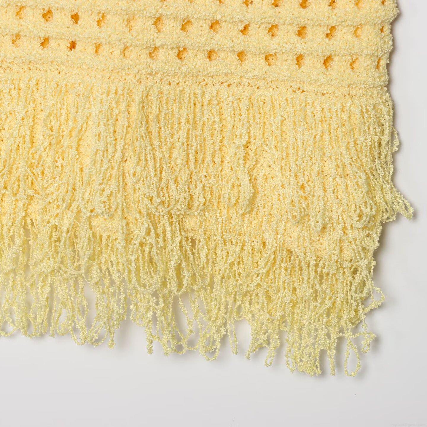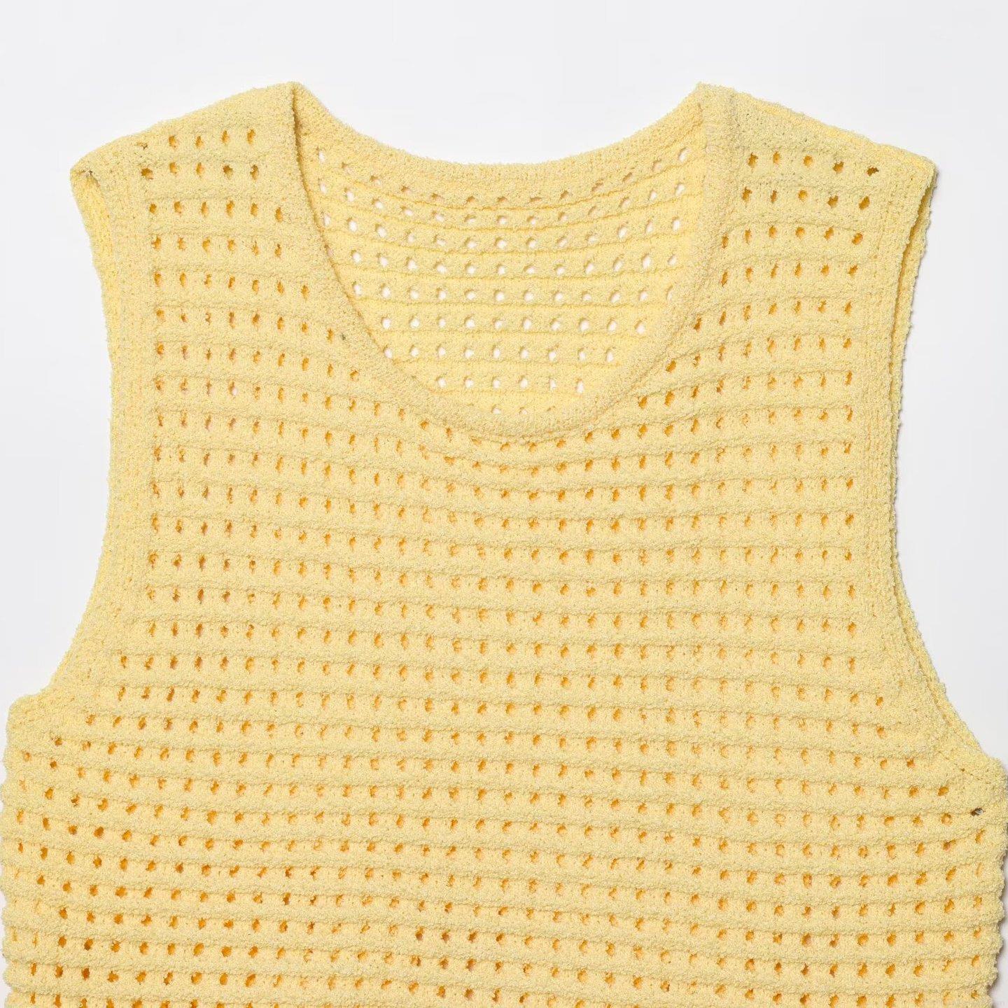 • Women's Fashion Yellow Knitted Hollow Tank Top With Tassels Hem Round Neck Sleeveless Crochet Top For Summer Beach Party Sweet Casual Style