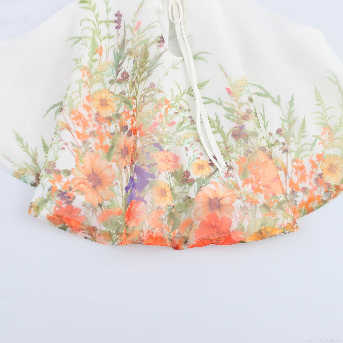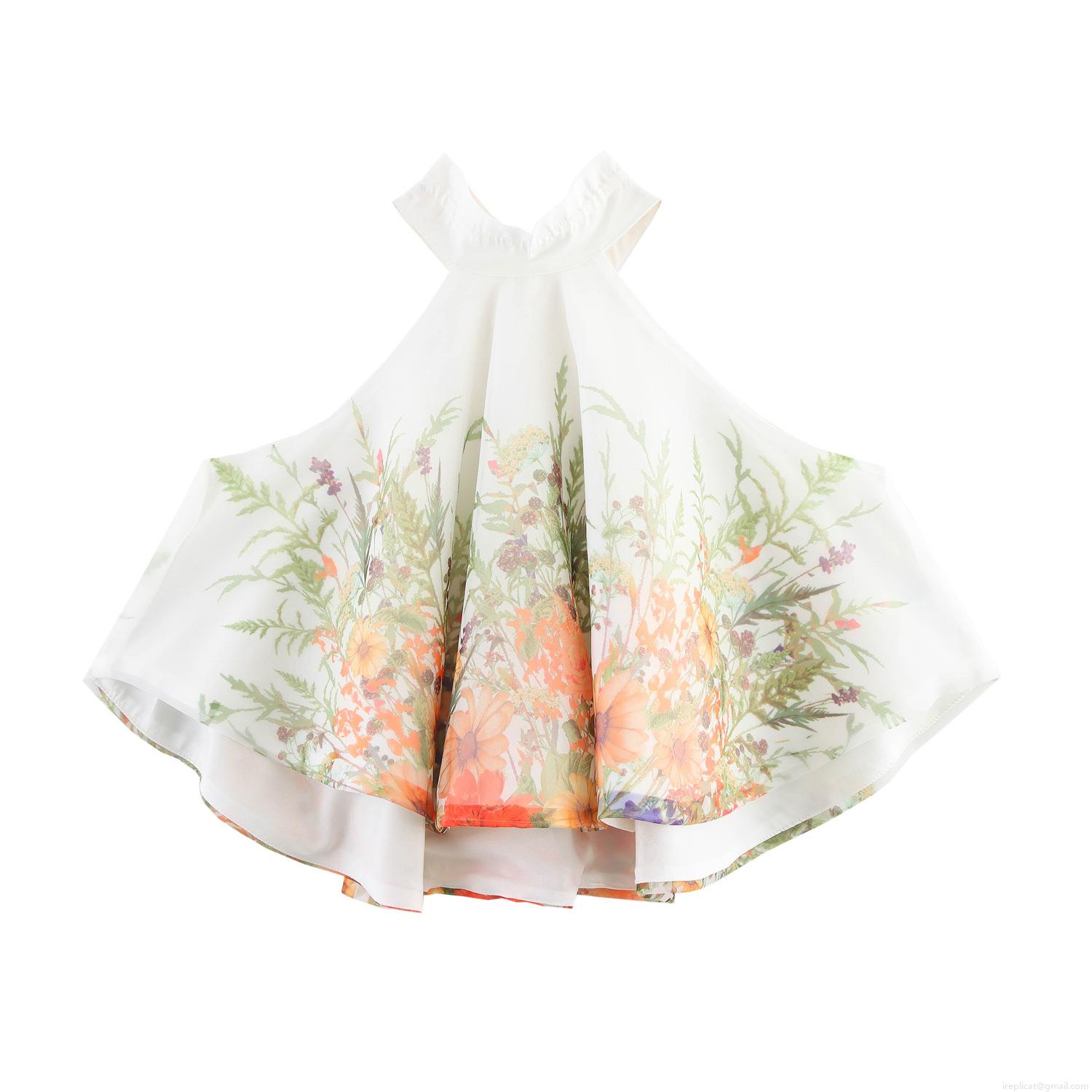 • Women's Floral Print Halter Neck Top Polyester Organza Sleeveless Camisole Flare Hem Tie Back Sweet Girly Style Summer Blouse