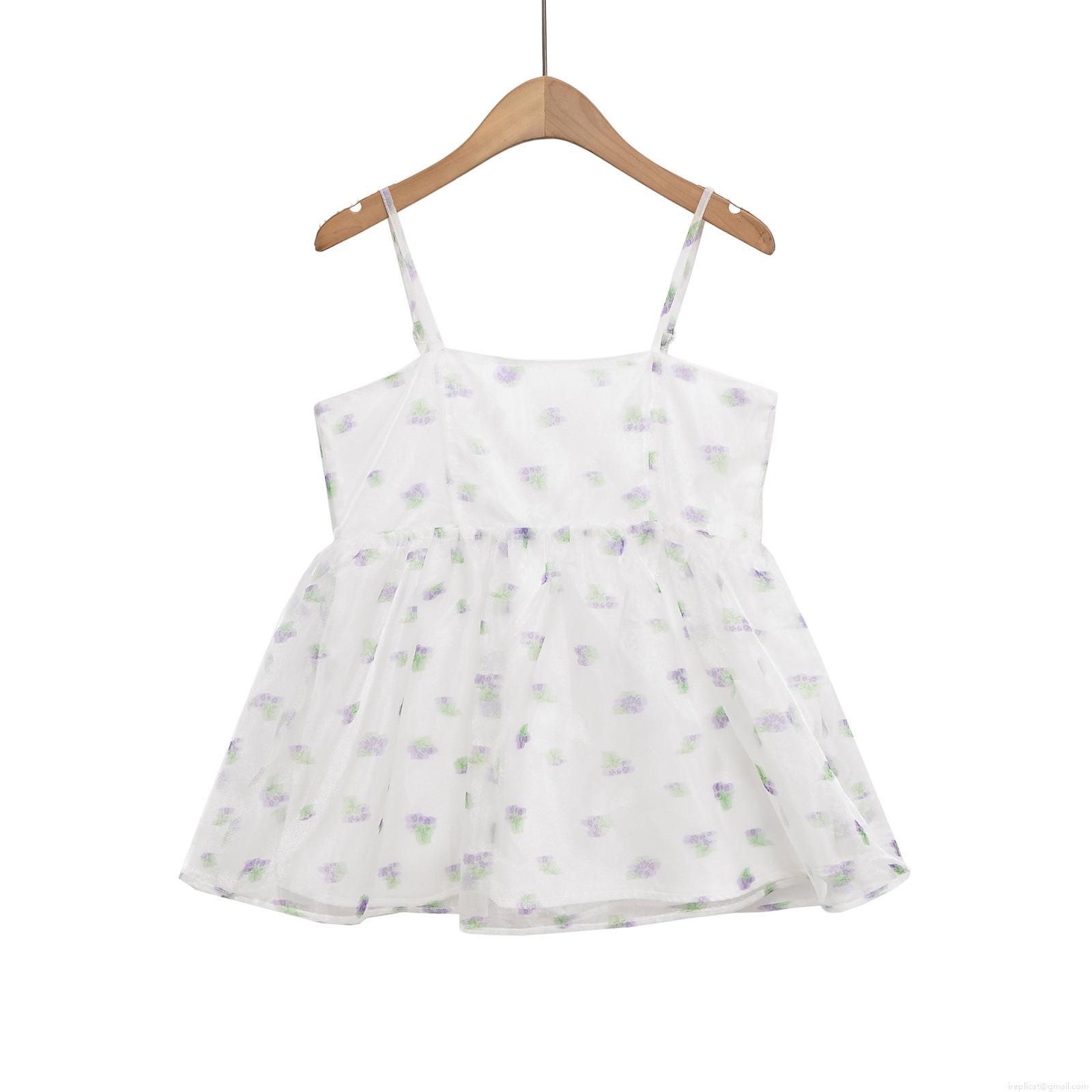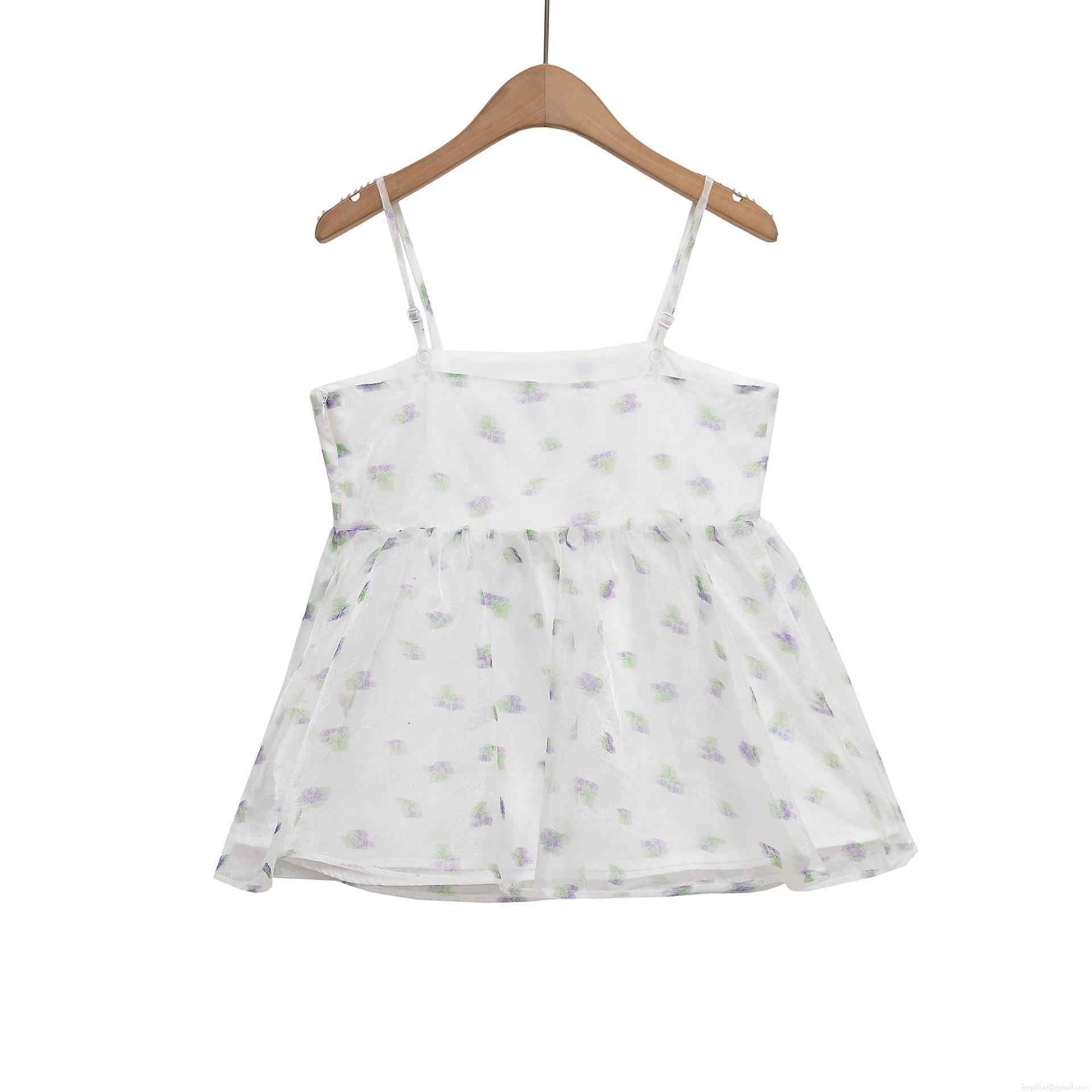Women's Floral Spaghetti Strap Camisole Polyester Organza Backless Summer Tank Top Street Style Sexy Peplum Hem Top For Women