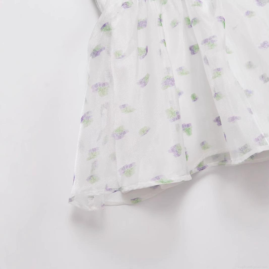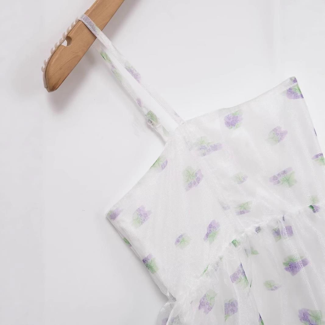 Translucent, Purple Floral Pattern, Pleats, Plant-based Printing, Backless, Ruffled Hem