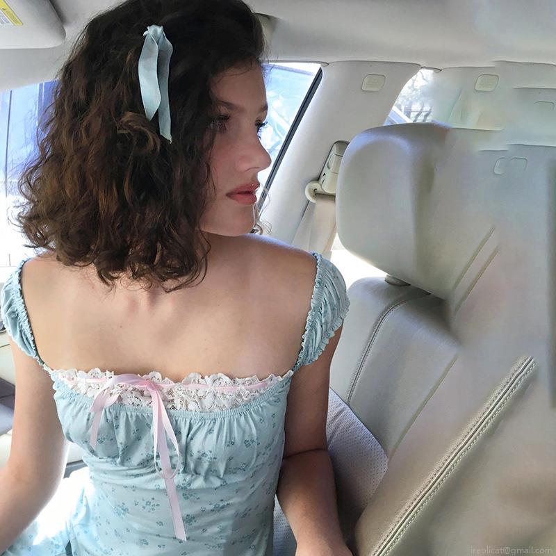 Bow, Floral Pattern, Pleats, Lace, Ribbon Bow, Ruffled Shoulder Strap