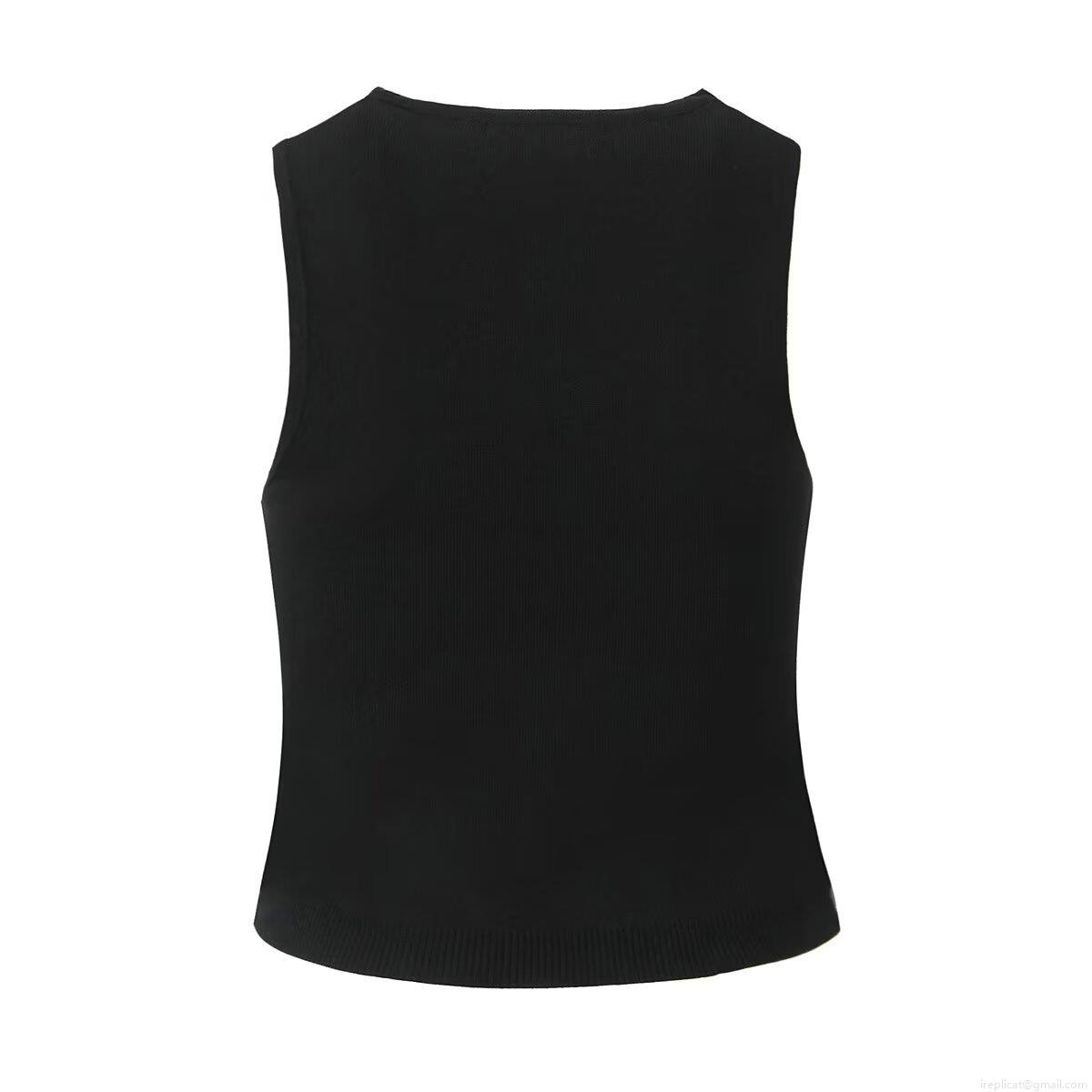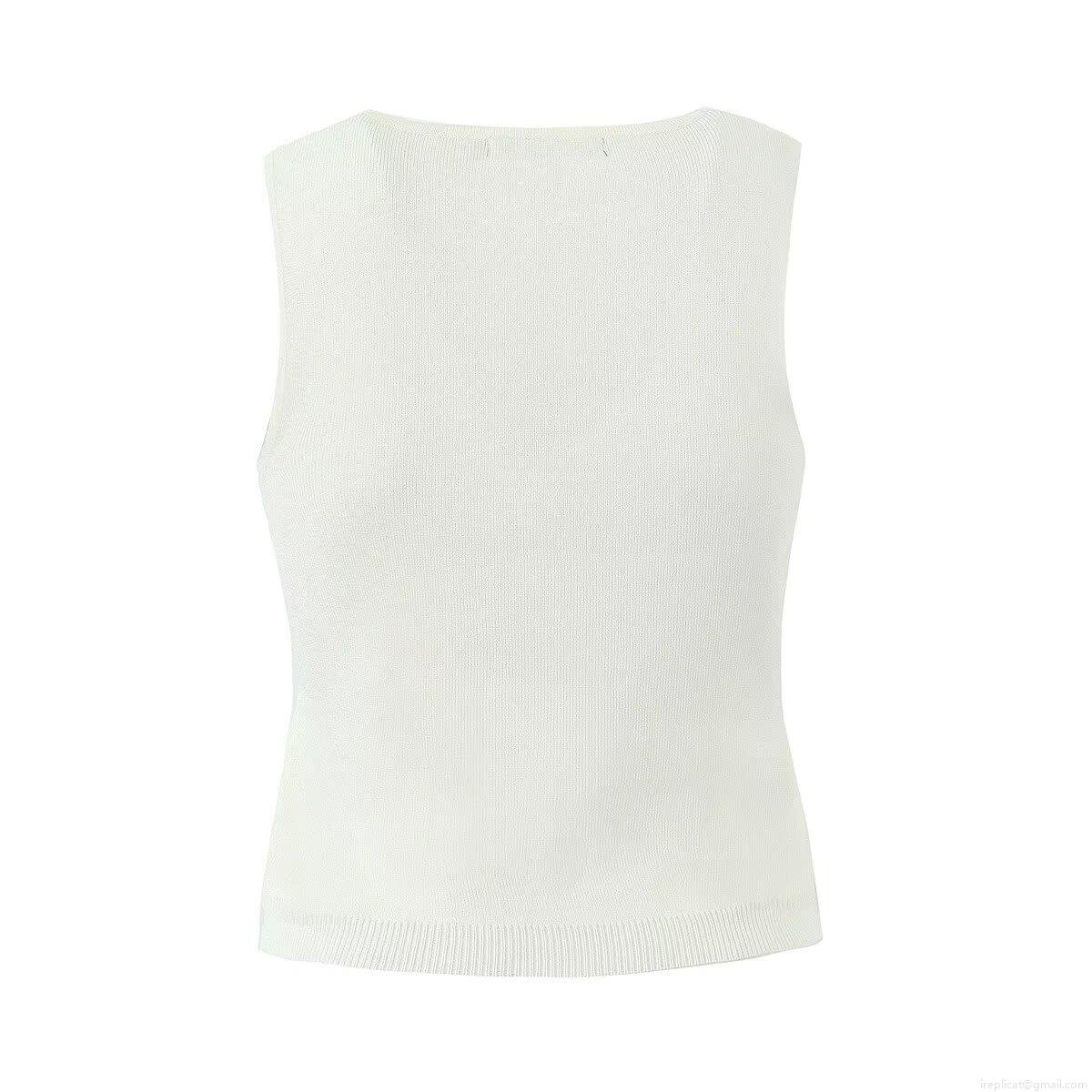 Women's French Style V-Neck Single-Breasted Knitted Vest Casual Solid Color Sleeveless Sweater Tank Top For Women Spring Autumn