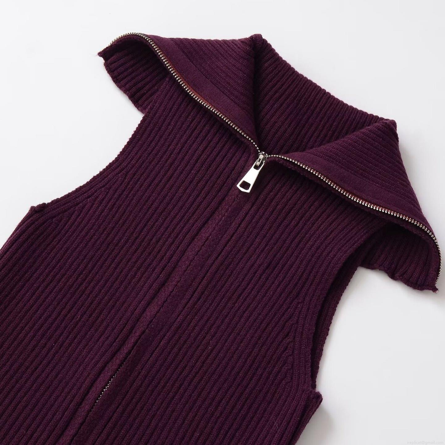Women's Full Zipper Ribbed Knitted Vest Tank Top Sleeveless Lapel Collar Casual Polyester Spandex Knitwear For Autumn Winter