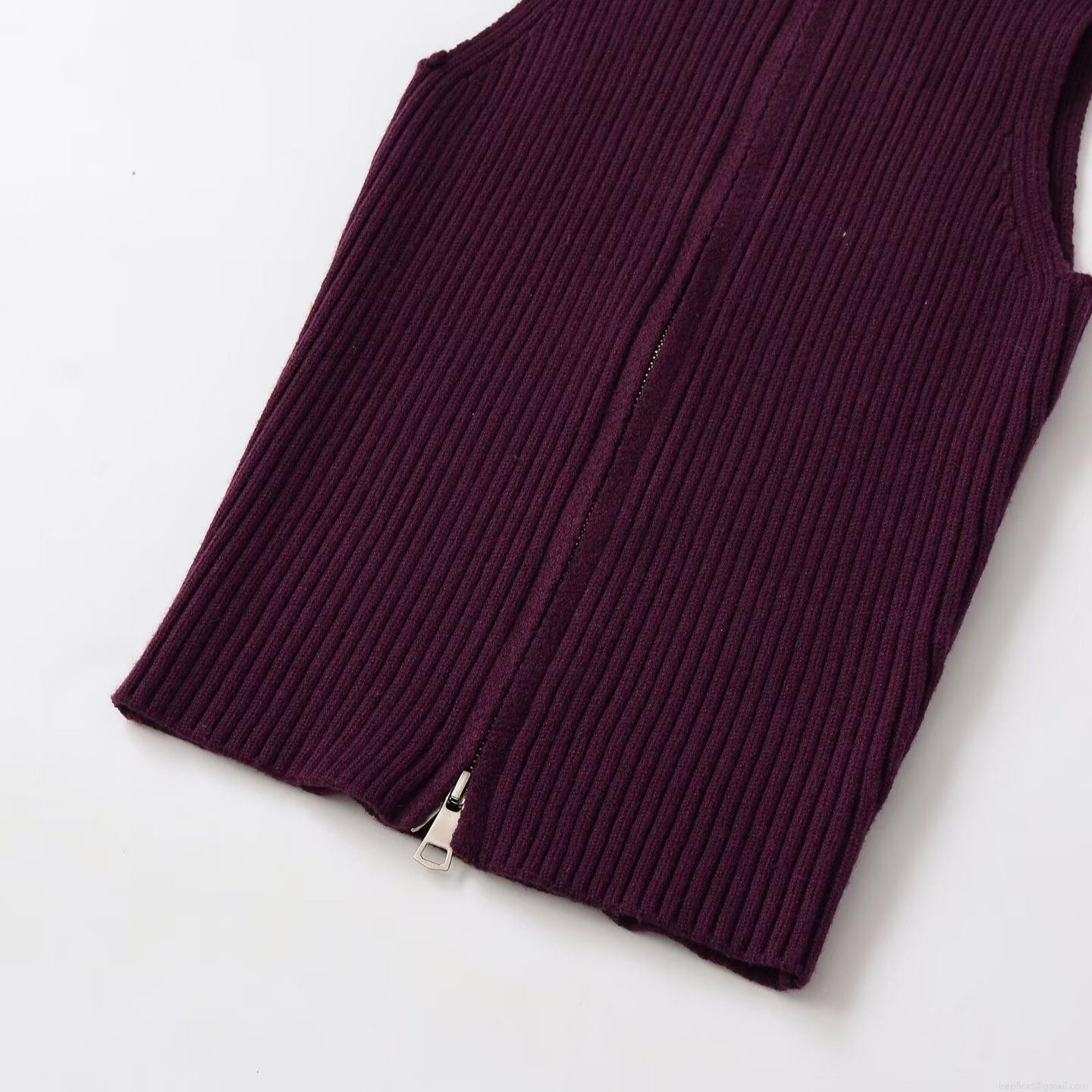 • Women's Full Zipper Ribbed Knitted Vest Tank Top Sleeveless Lapel Collar Casual Polyester Spandex Knitwear For Autumn Winter