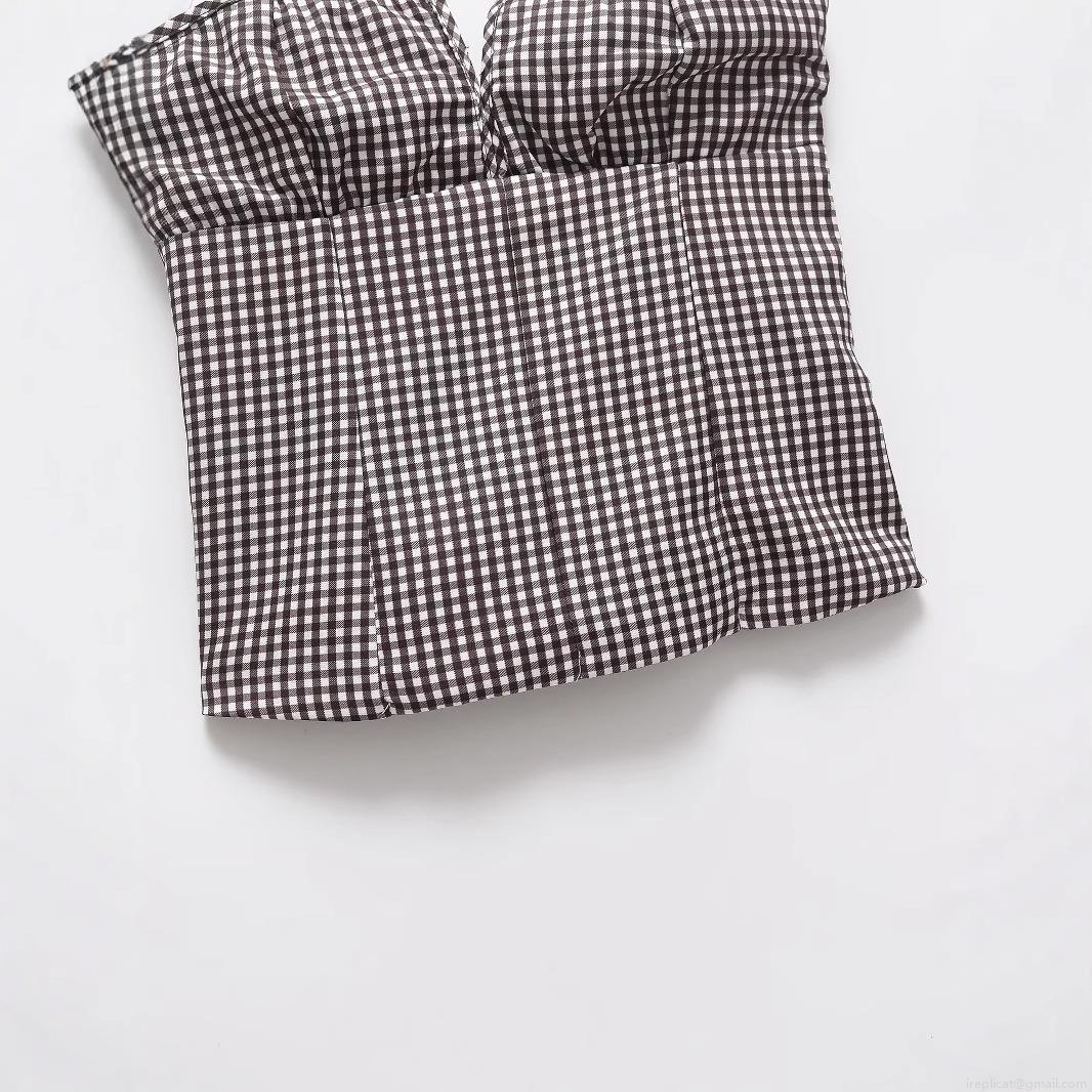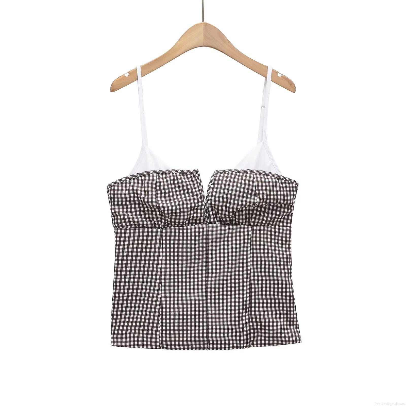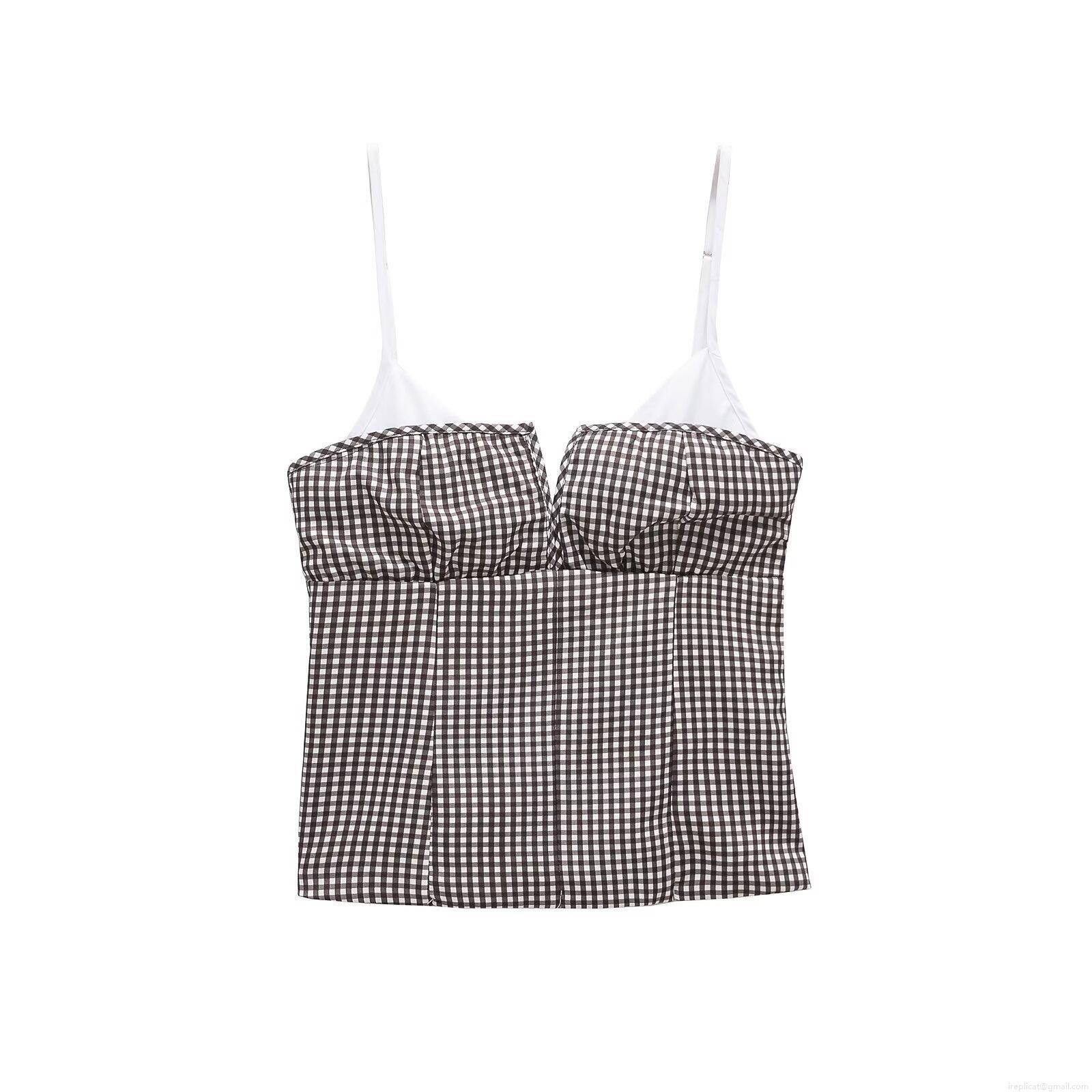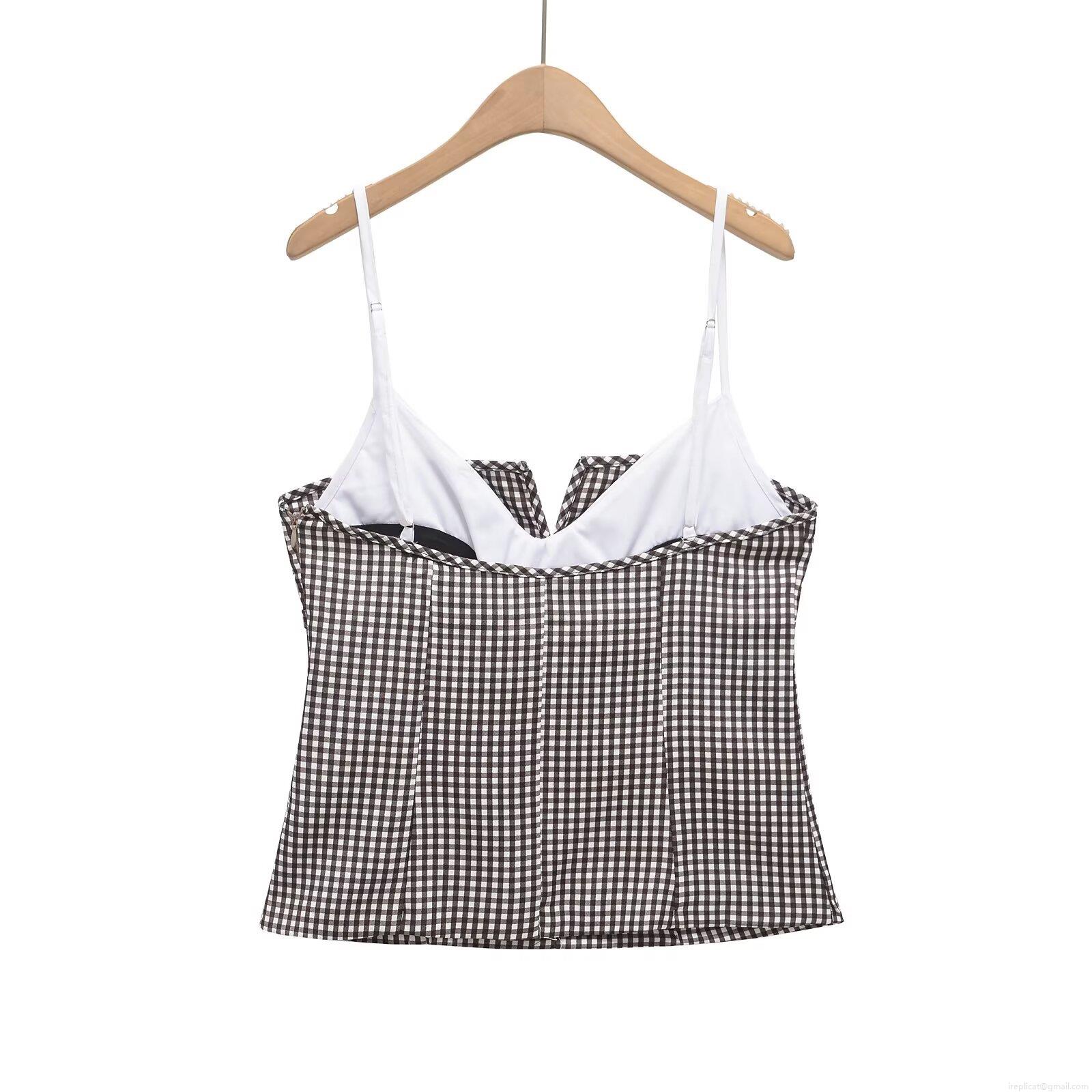 • Women's Gingham Checkered Camisole Polyester Slim Fit V-Neck Crop Top With Adjustable Straps Sexy Retro Summer Tank Top For Women