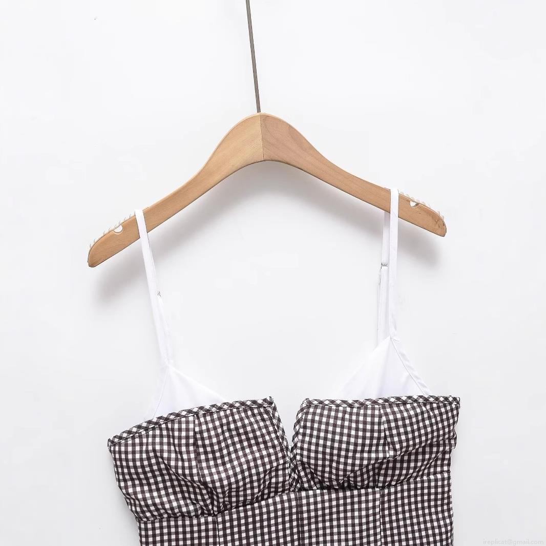 Checkered Pattern, Slimming And Waist-cinching, Thin Shoulder Straps, V-neck Pleats