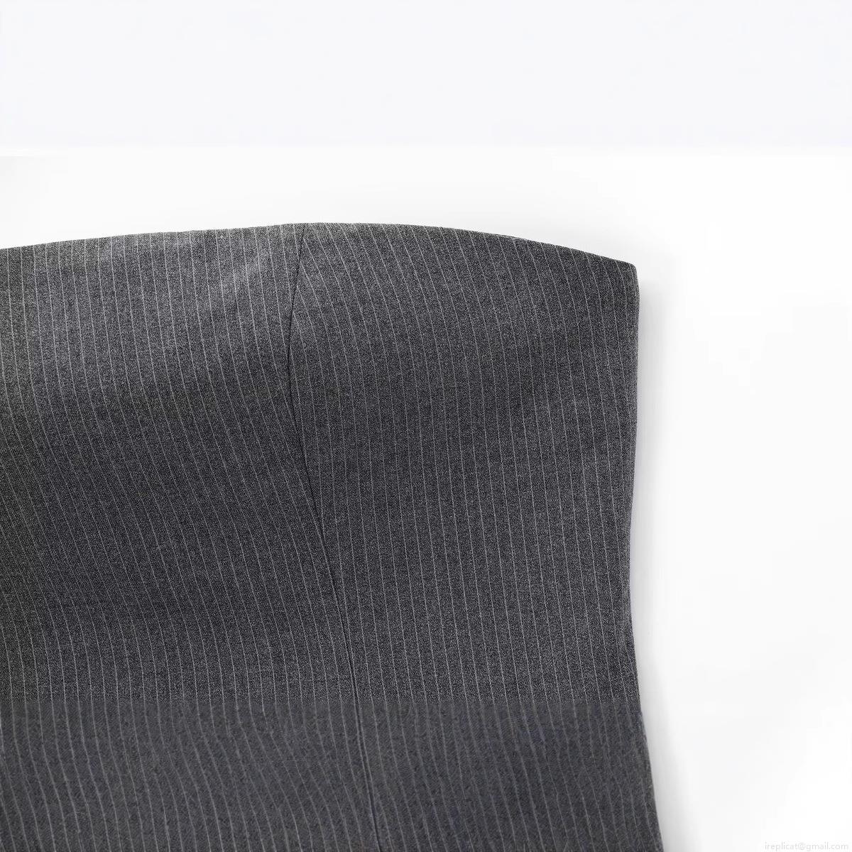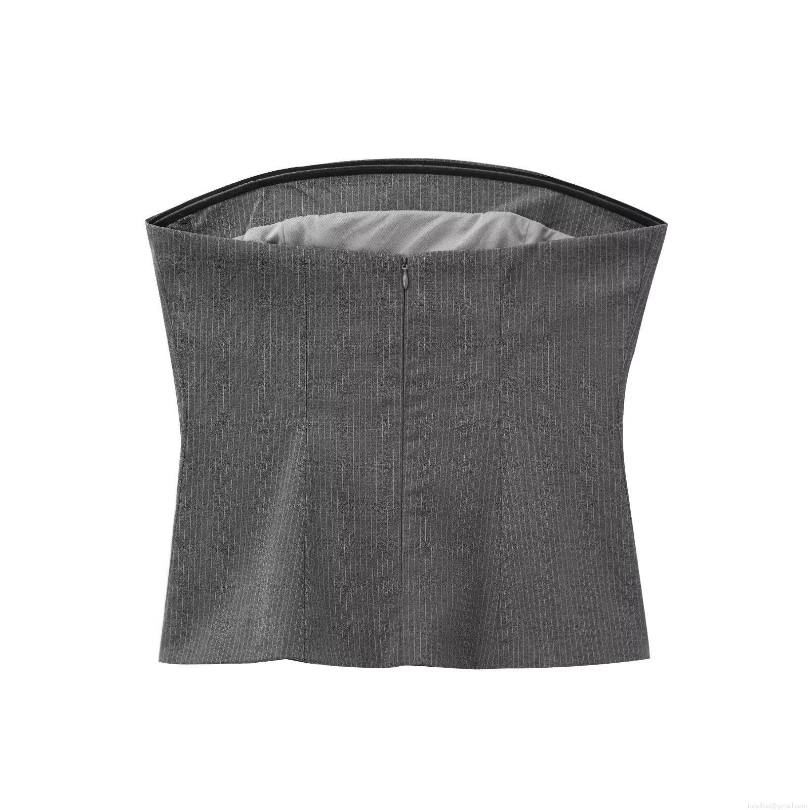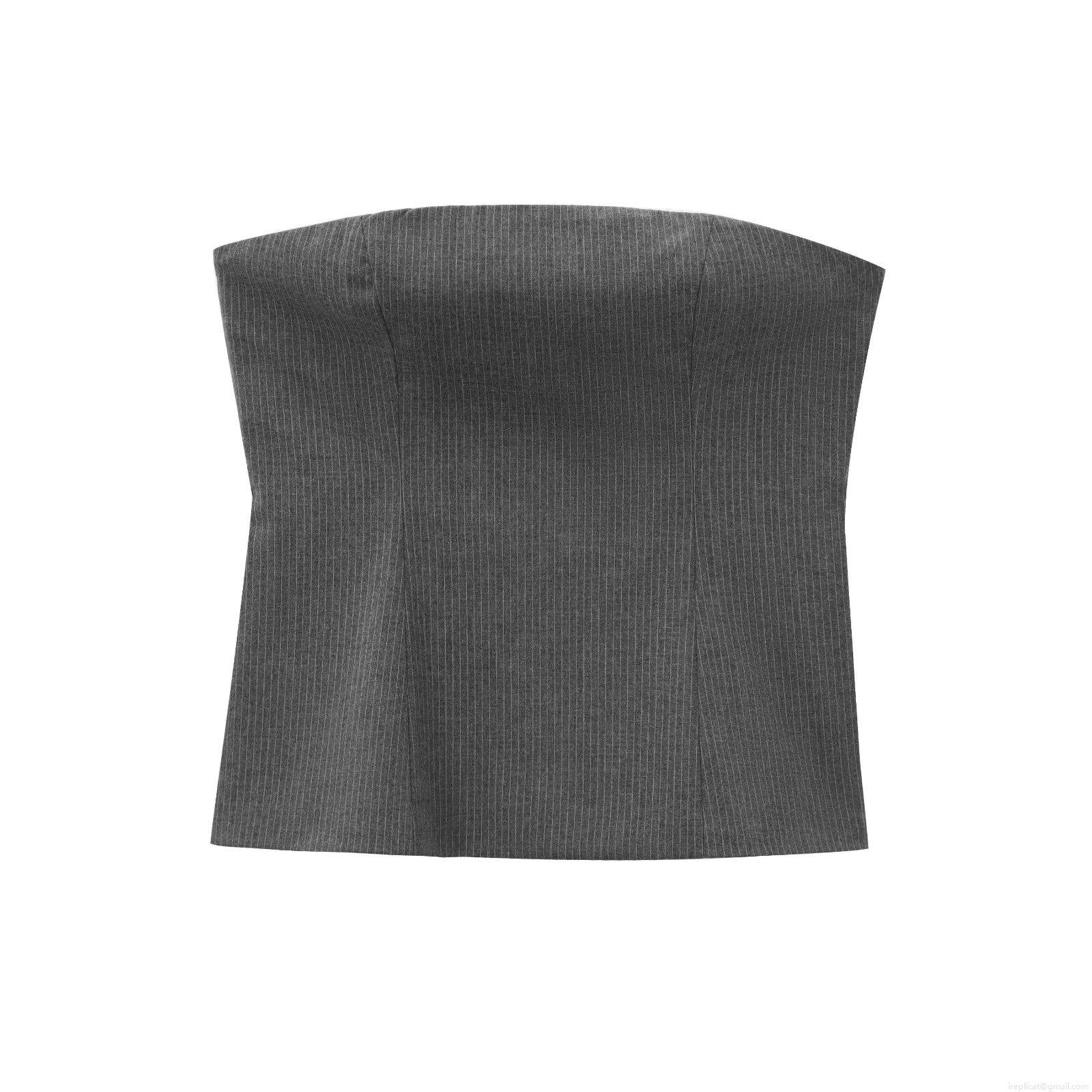 • Women's Grey Pinstripe Strapless Tube Top Slim Fit Sexy Bustier Crop Top Worsted Fabric Sleeveless Tank Top for Party Club Sophisticated Lady Style