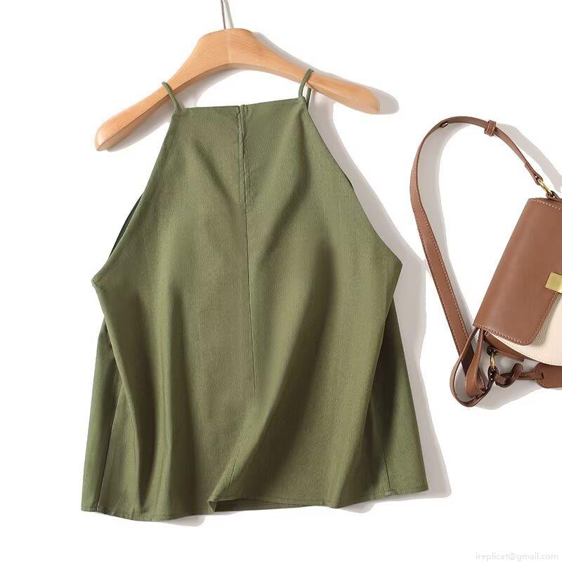 • Women's Halter Neck Camisole Viscose Polyester Linen Cotton Blend Minimalist Sleeveless Tank Top For Summer Holiday Vacation Casual Solid Color Backless Vest