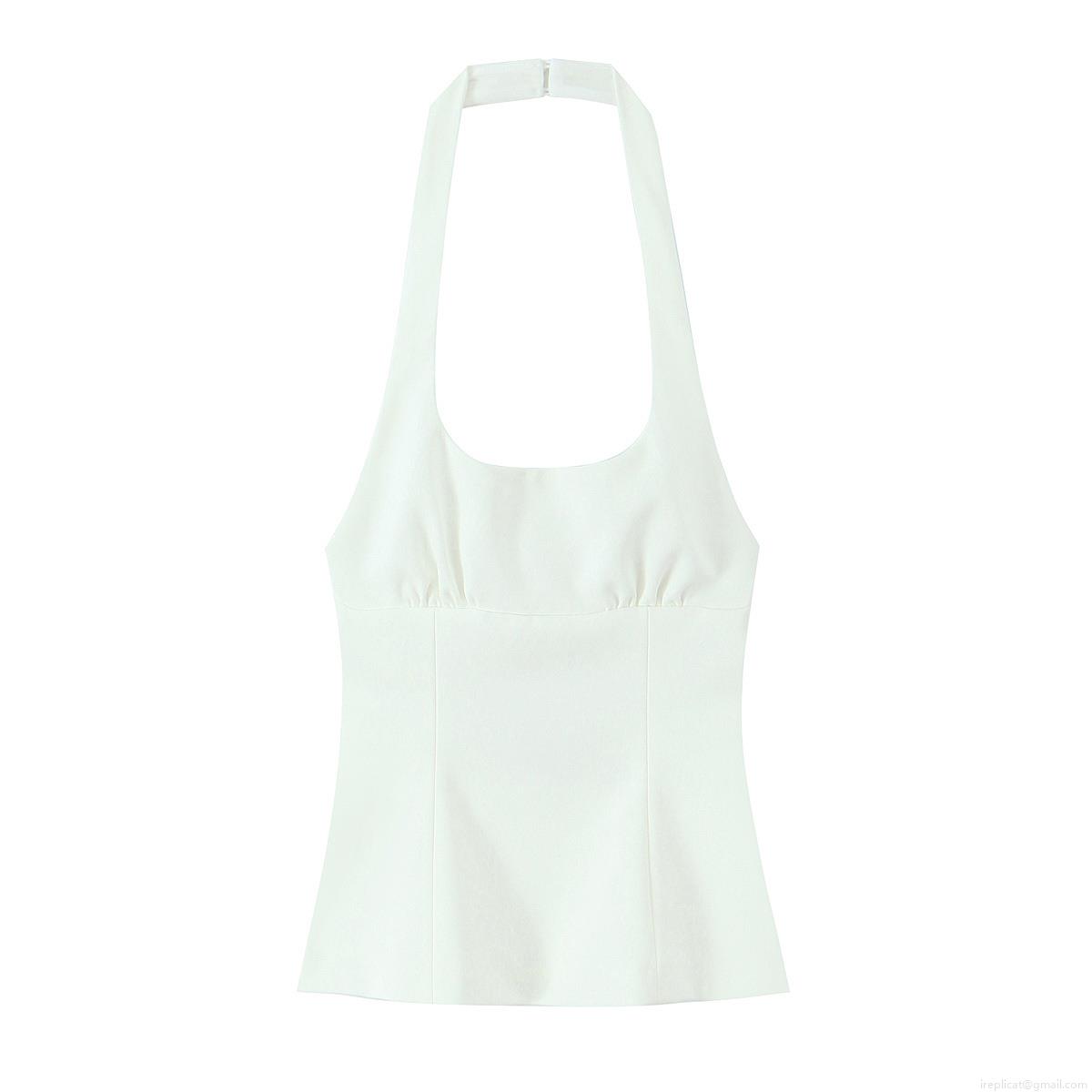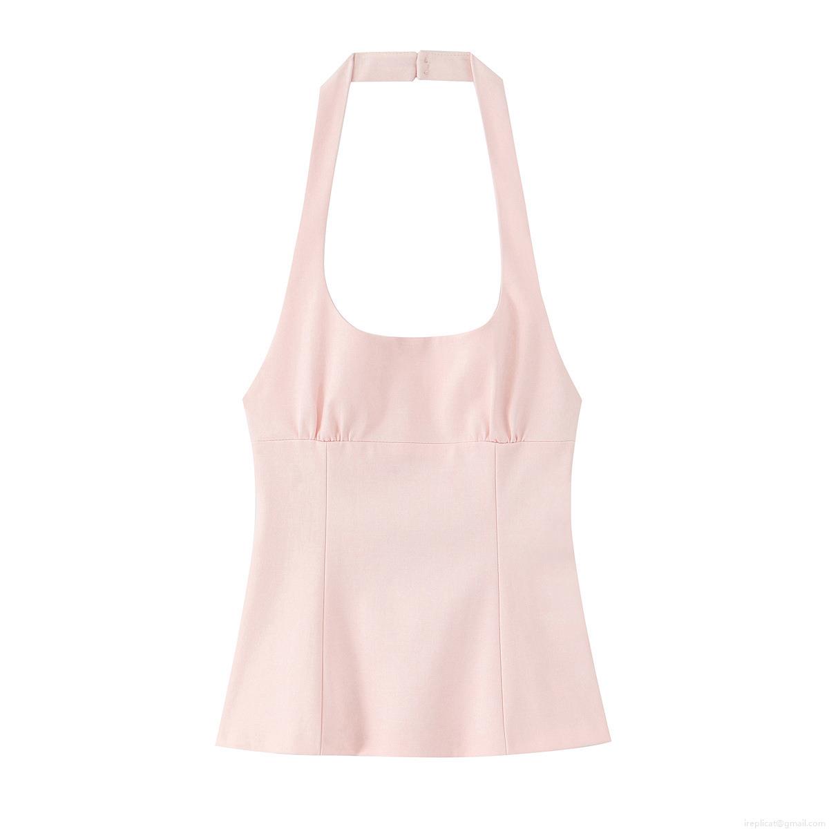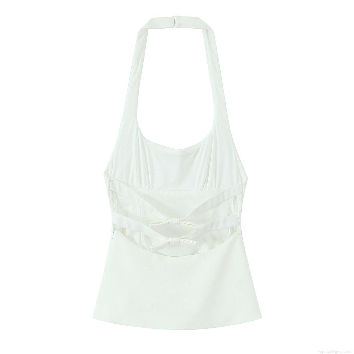 • Women's Halter Neck Slim Fit Backless Top With Bow Detail Woven Solid Color Sleeveless Camisole For Summer Party Dating Socialite Style Sweet Fresh Tops