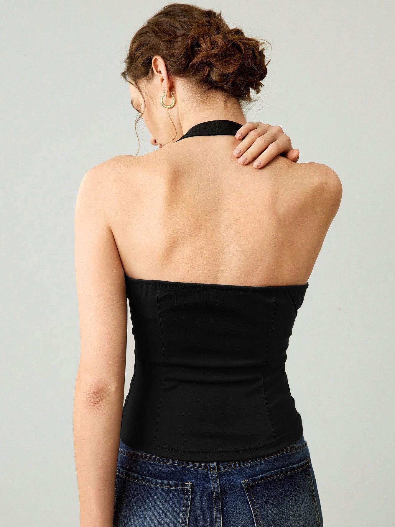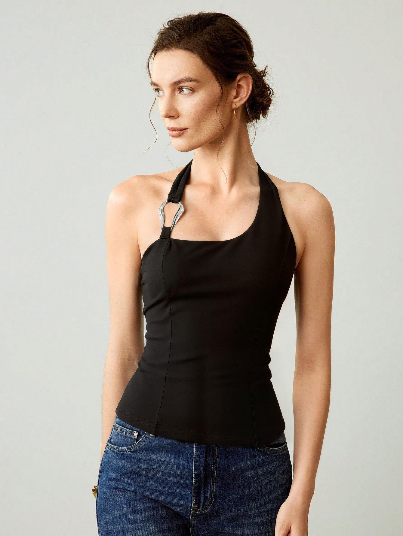 • Women's Halter Neck Slim Fit Tank Top With Metal Ring Sexy Asymmetric One Shoulder Sports Yoga Crop Top Sleeveless Tops For Party Gym Activewear