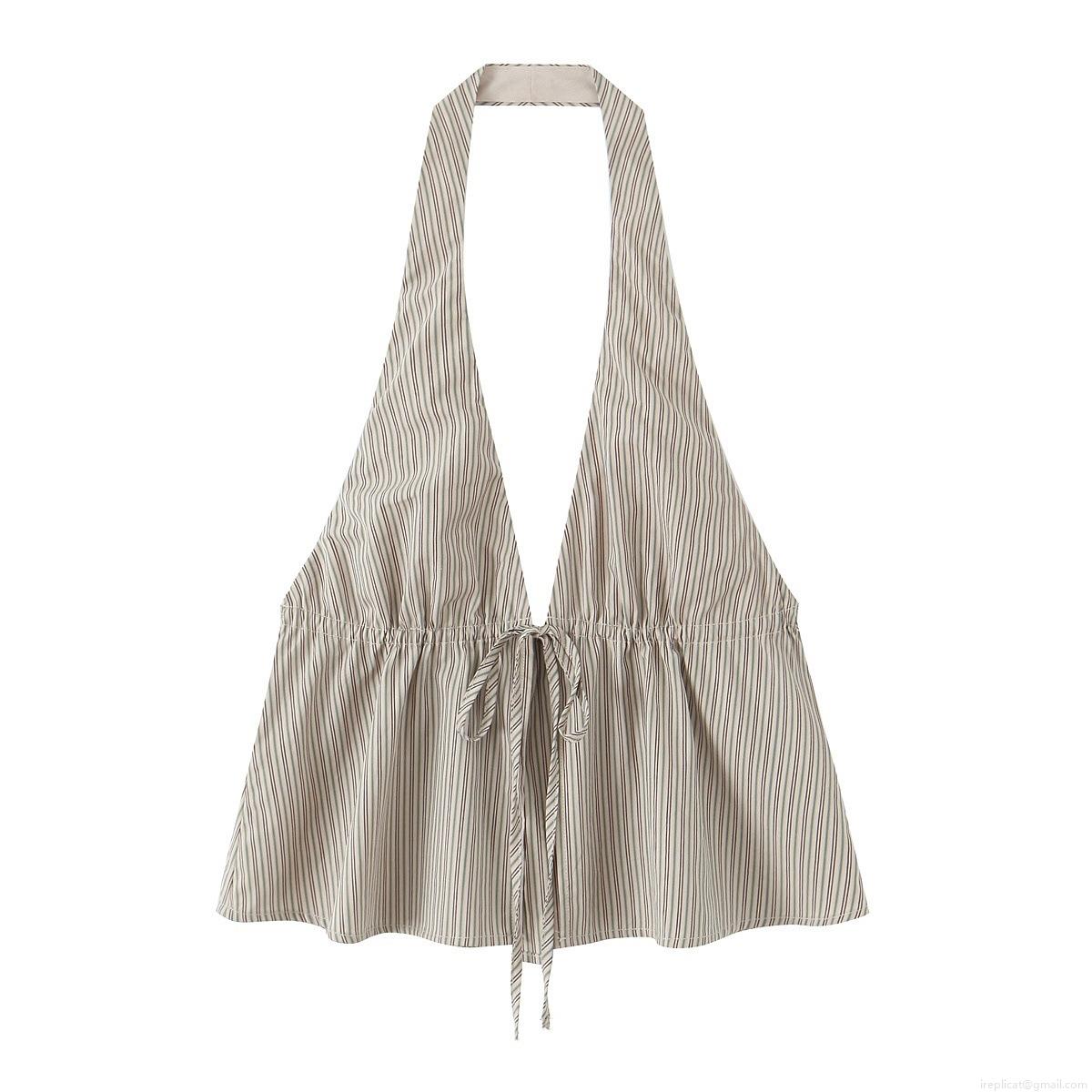 • Women's Halter Neck Striped Top Sexy Deep V-Neck Drawstring Waist Peplum Tank Top Sleeveless Summer Casual Cotton Blend Striped Camisole For Women