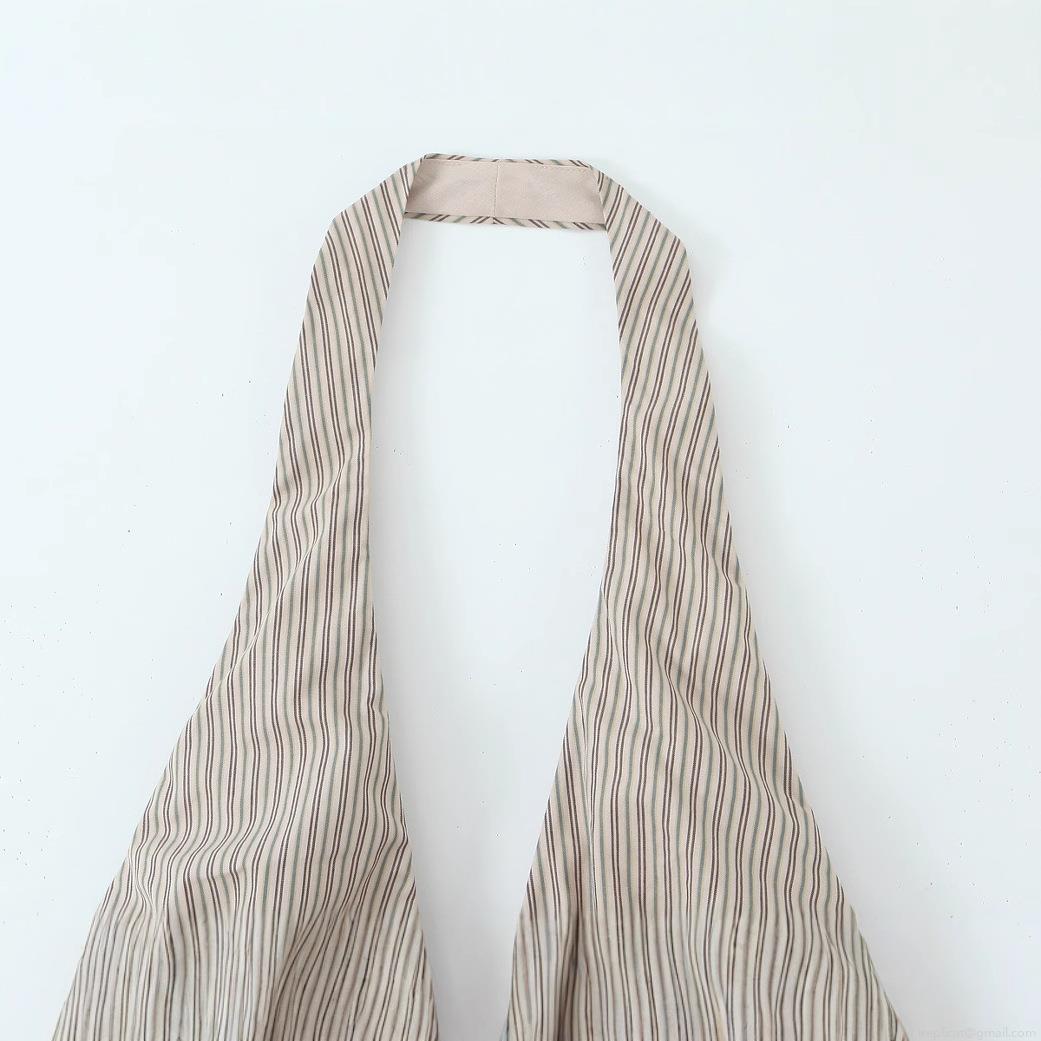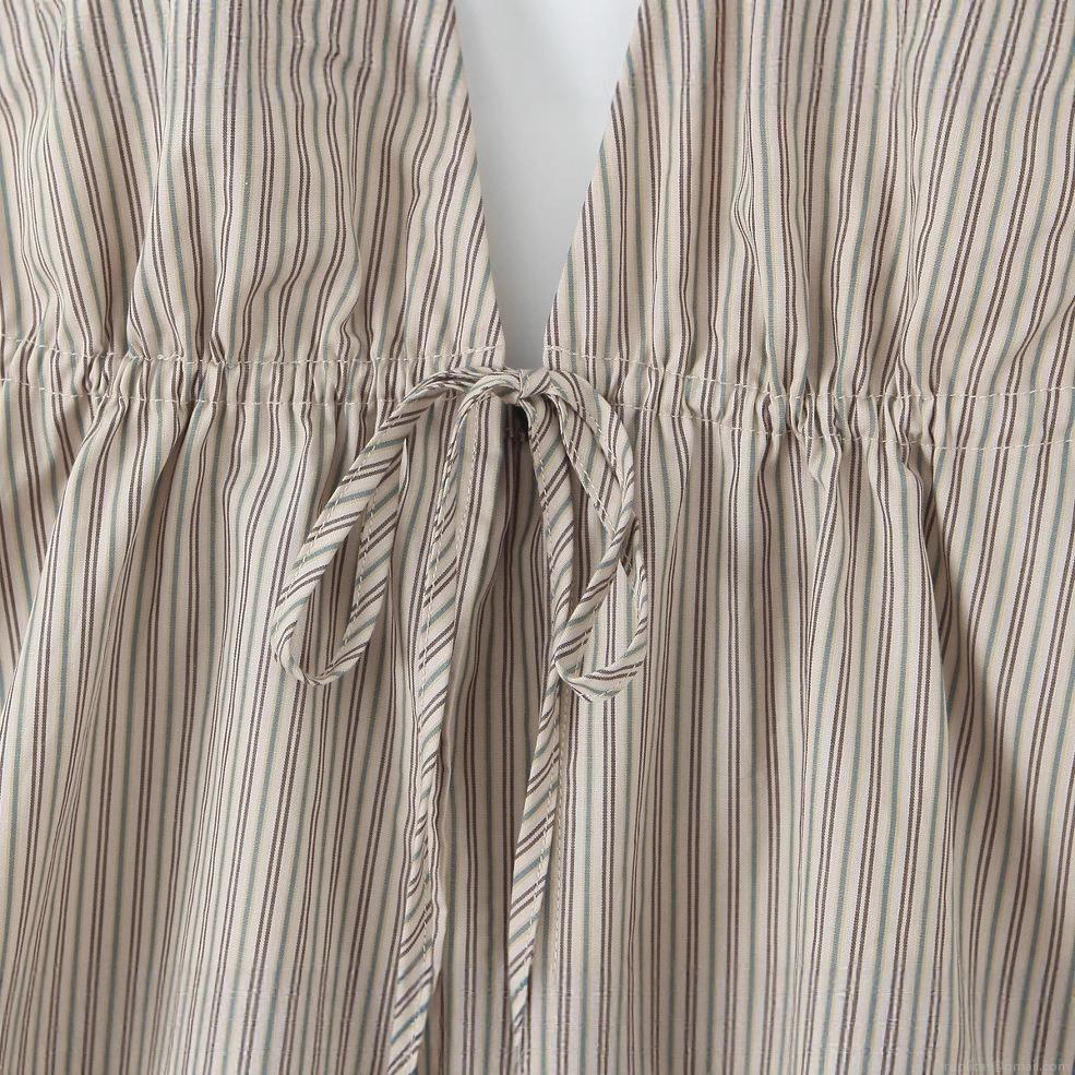 Stripe, Drawstring, Vertical Stripes, Neckband, Lace, Deep V, Umbrella-shaped Hem
