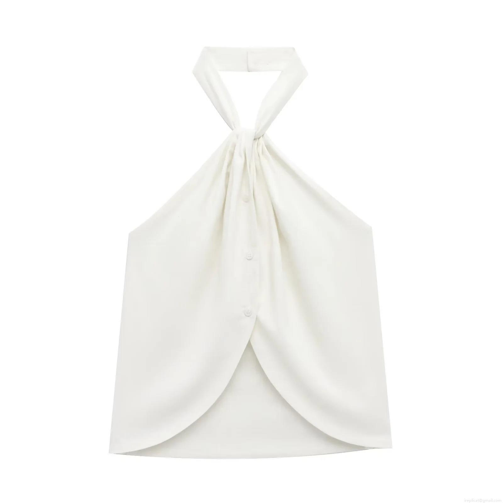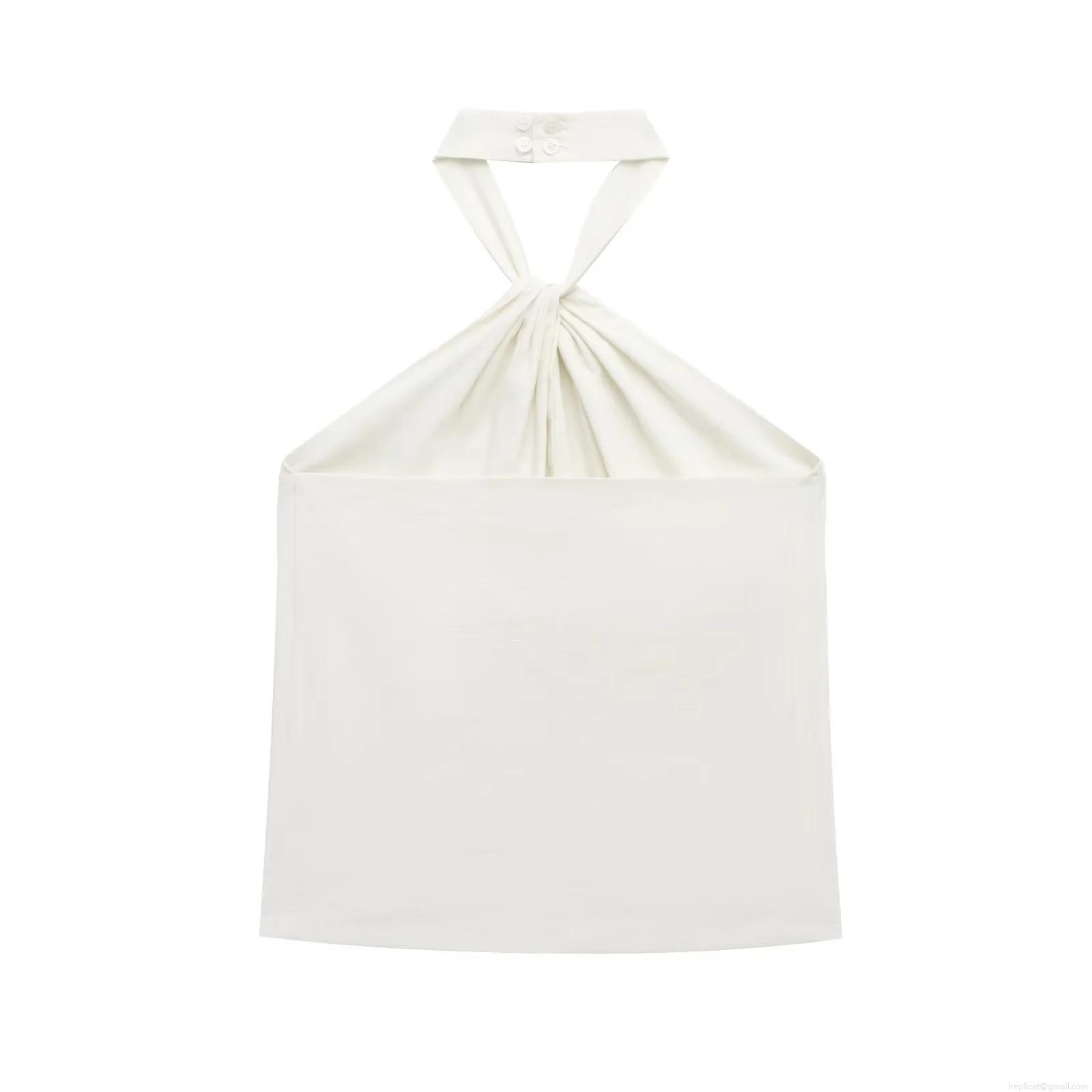 • Women's Halter Neck Tank Top Sexy Twist Knot Button Down Sleeveless Cami Summer Backless Solid Color Polyester Top for Party Beach Clubwear