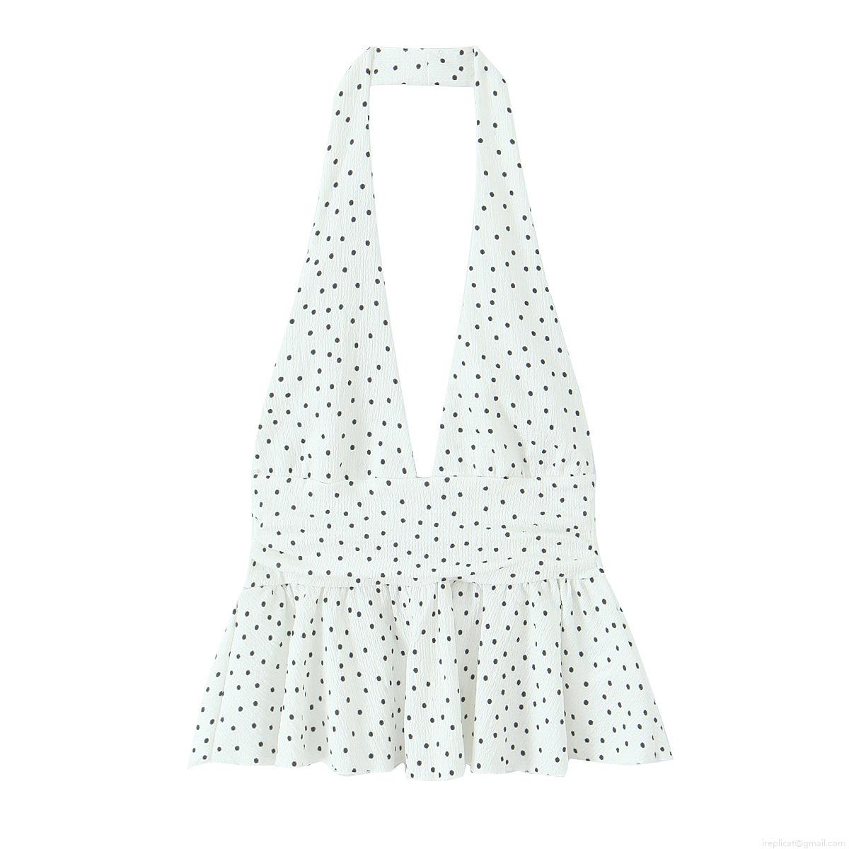 Solid Color, Polka Dots, Pleats, Ruffles, Neckband, Backless, Deep V