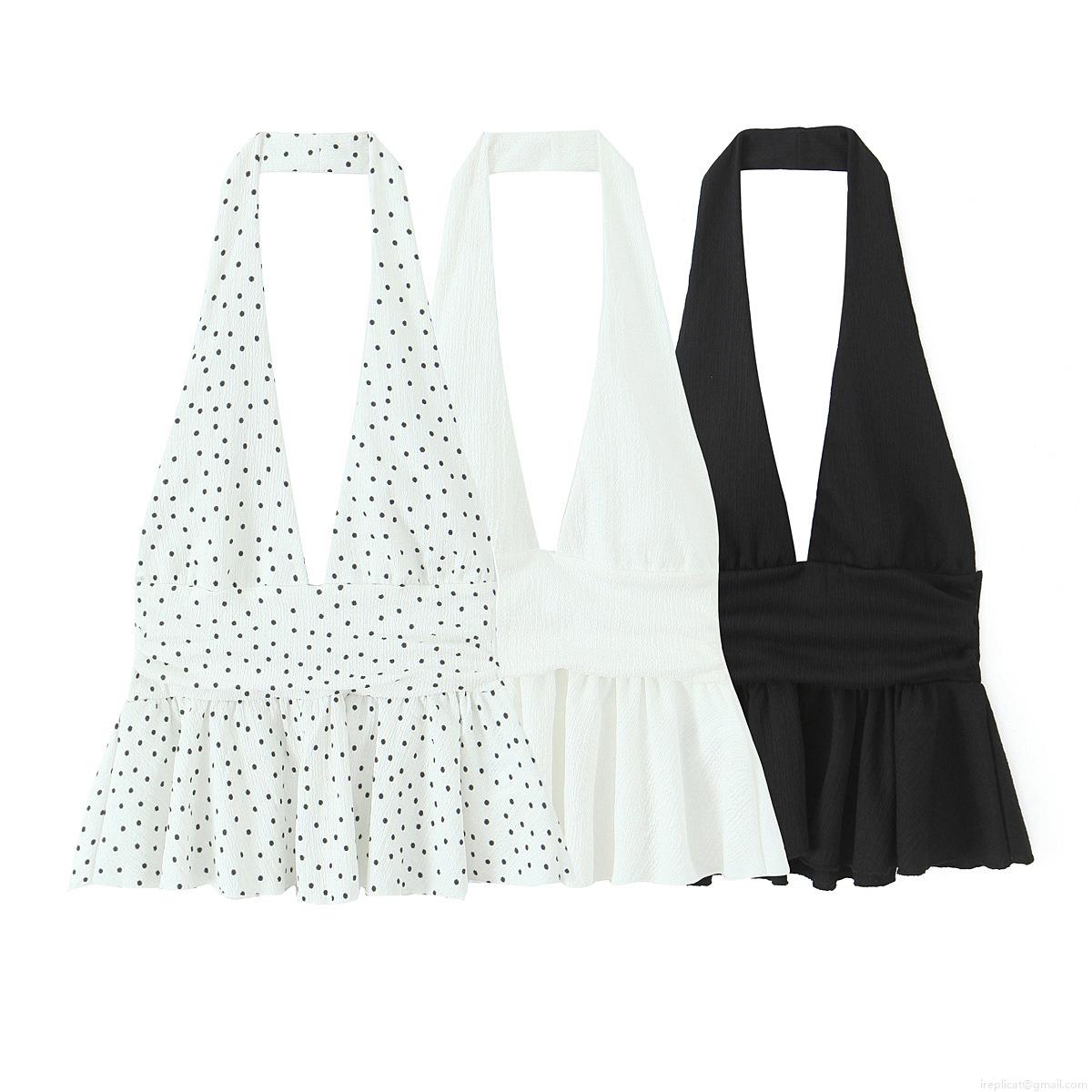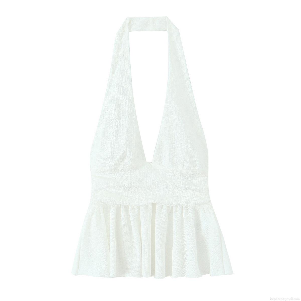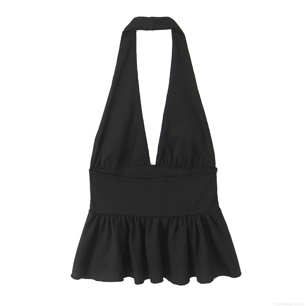 • Women's Halter Neck V Neck Peplum Top Plissé Ruffle Hem Backless Sleeveless Camisole Polyester Elegant Casual Summer Blouse For Women Party Clubwear