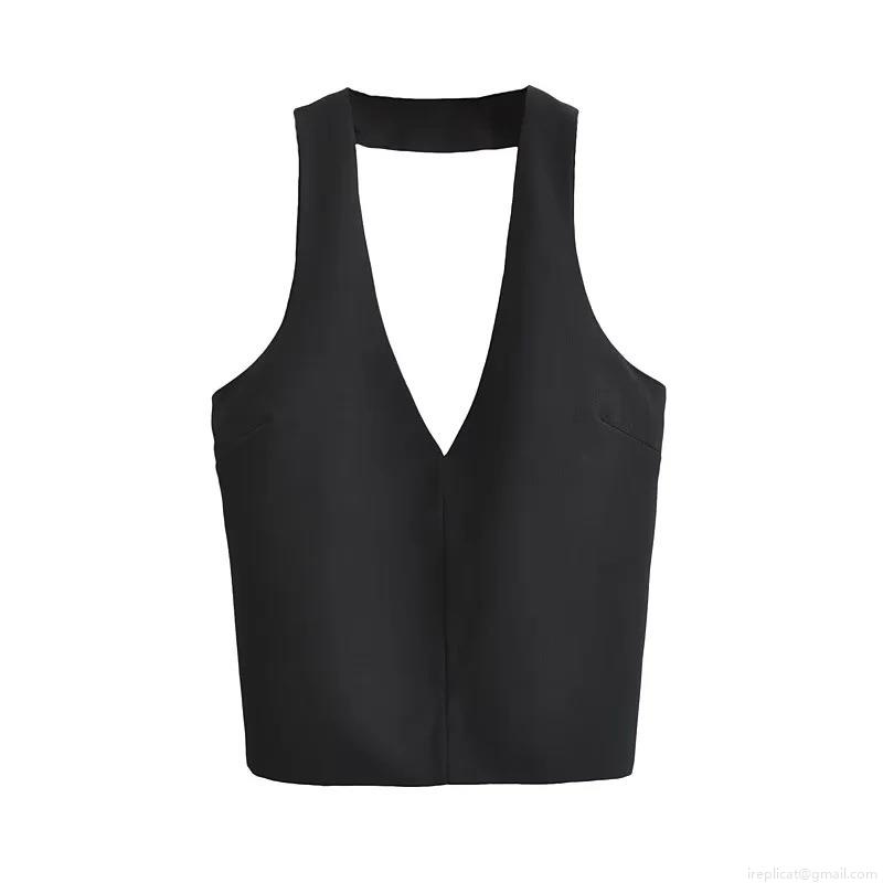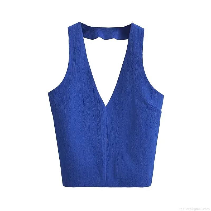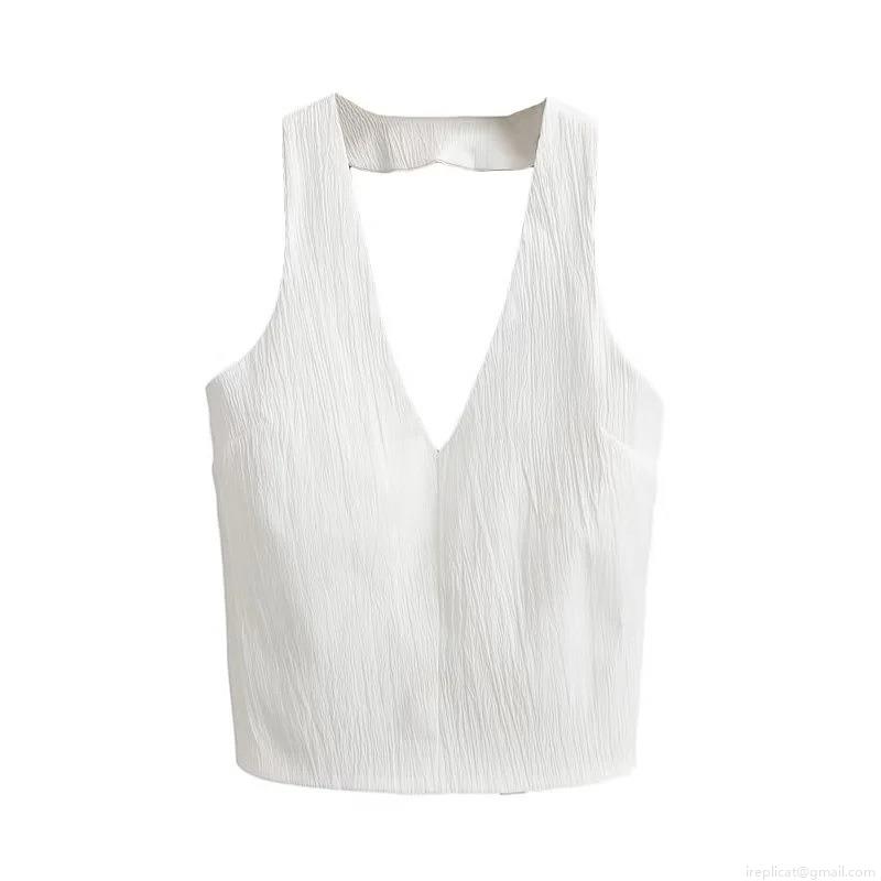 • Women's Halter V Neck Backless Tank Top With Bow Tie Back Ruched Texture Polyester Sleeveless Short Vest For Summer Party Elegant Sexy Camisole