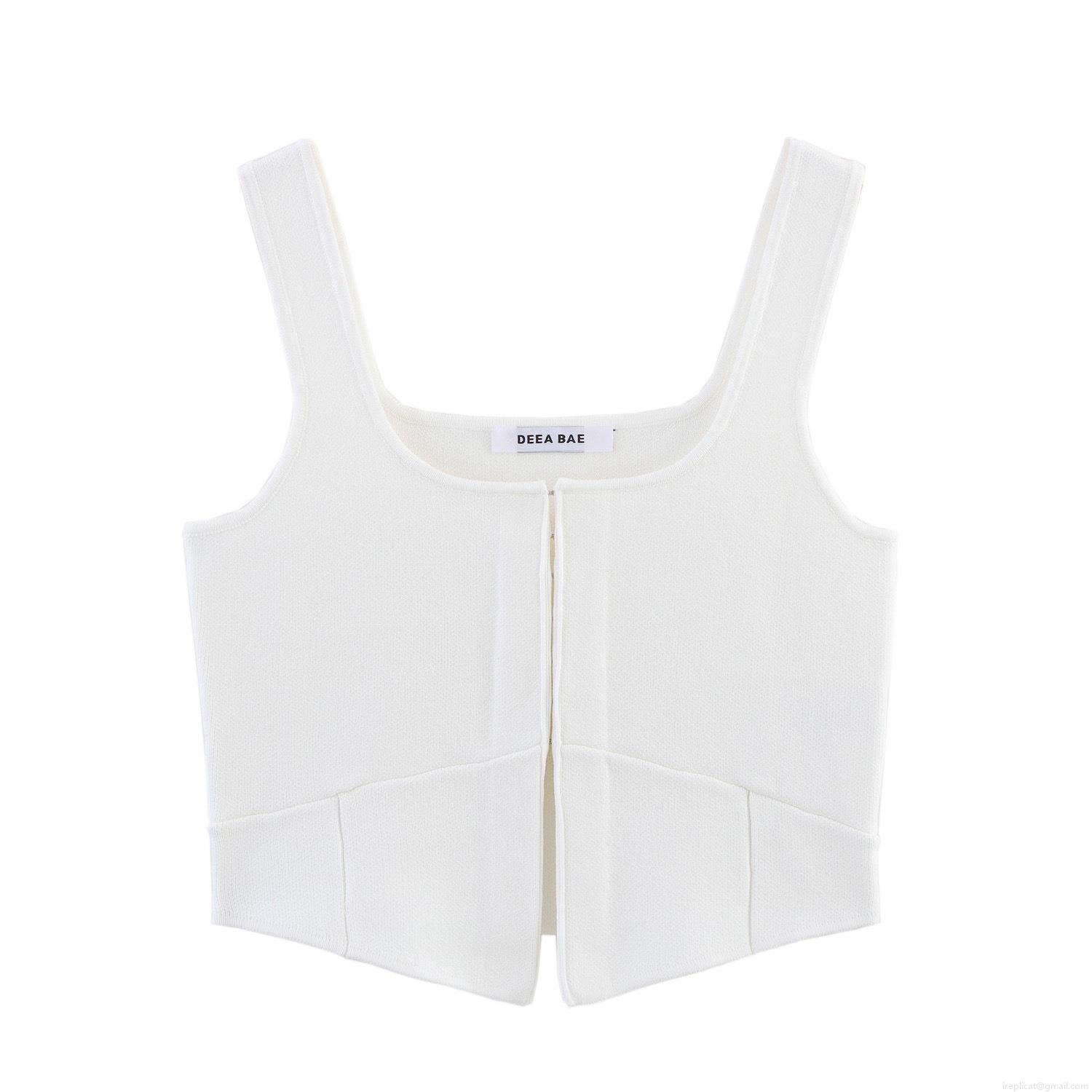 • Women's Knit Button Down Camisole Square Neck Crop Tank Top Slim Fit Sleeveless Knitwear Vest Streetwear Summer Casual Tops