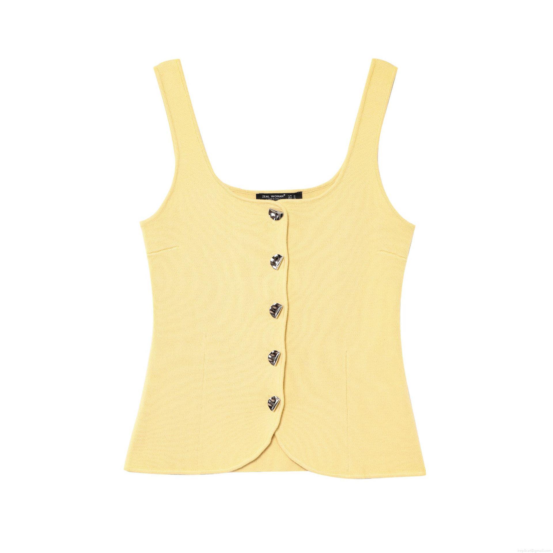 Solid Color, Wide Shoulder Strap, Metal Buttons, Fine Knit Texture