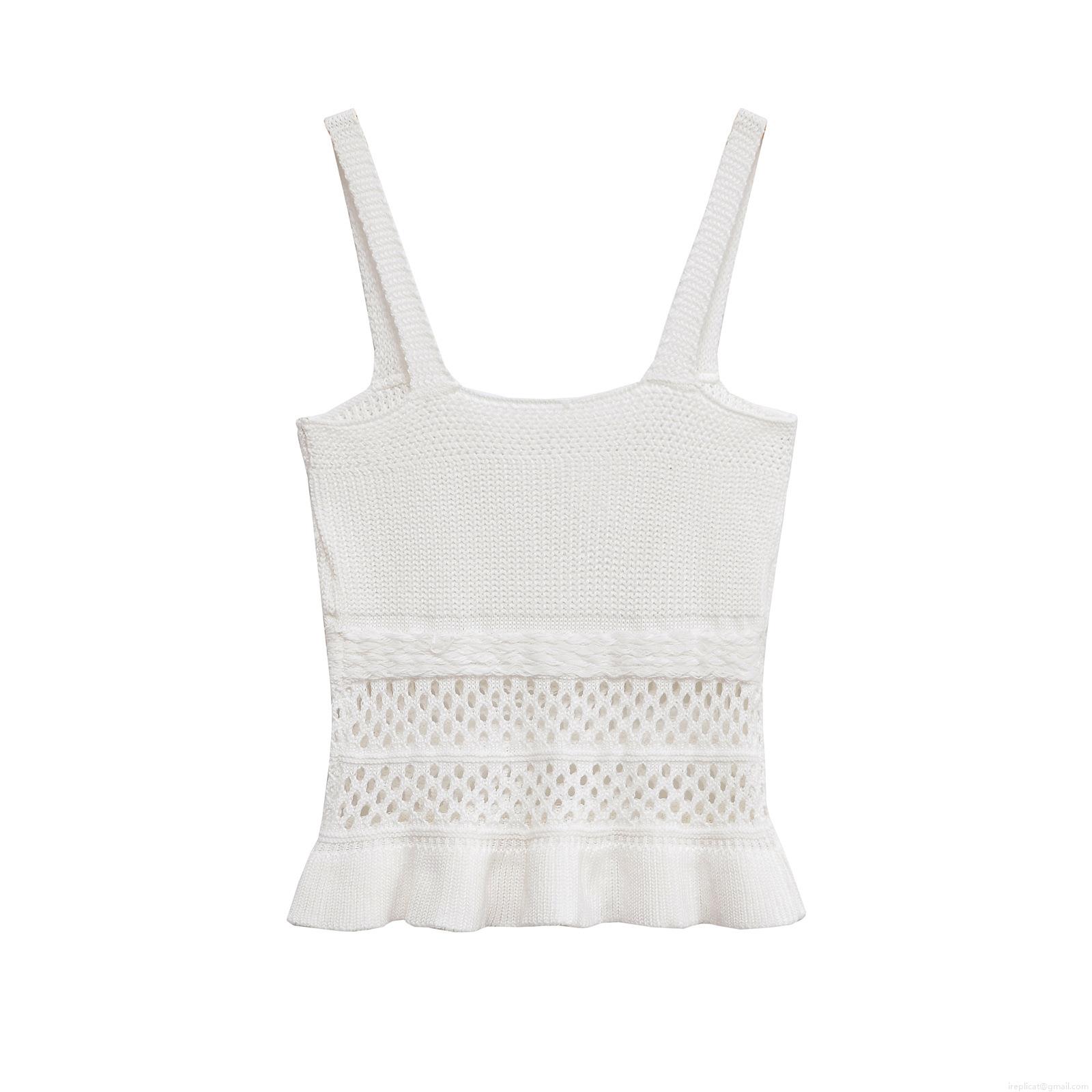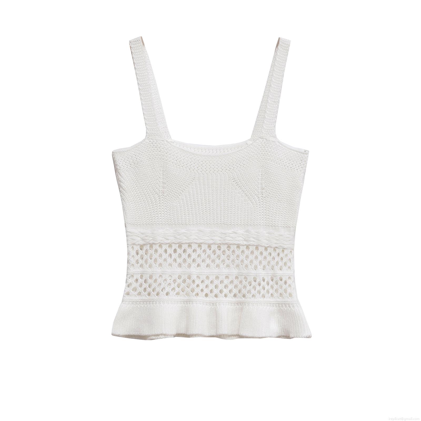• Women's Knit Tank Top Crochet Hollow Out Ruffle Hem Sleeveless Vest Top French Style Slim Fit Camisole For Summer Dating Party