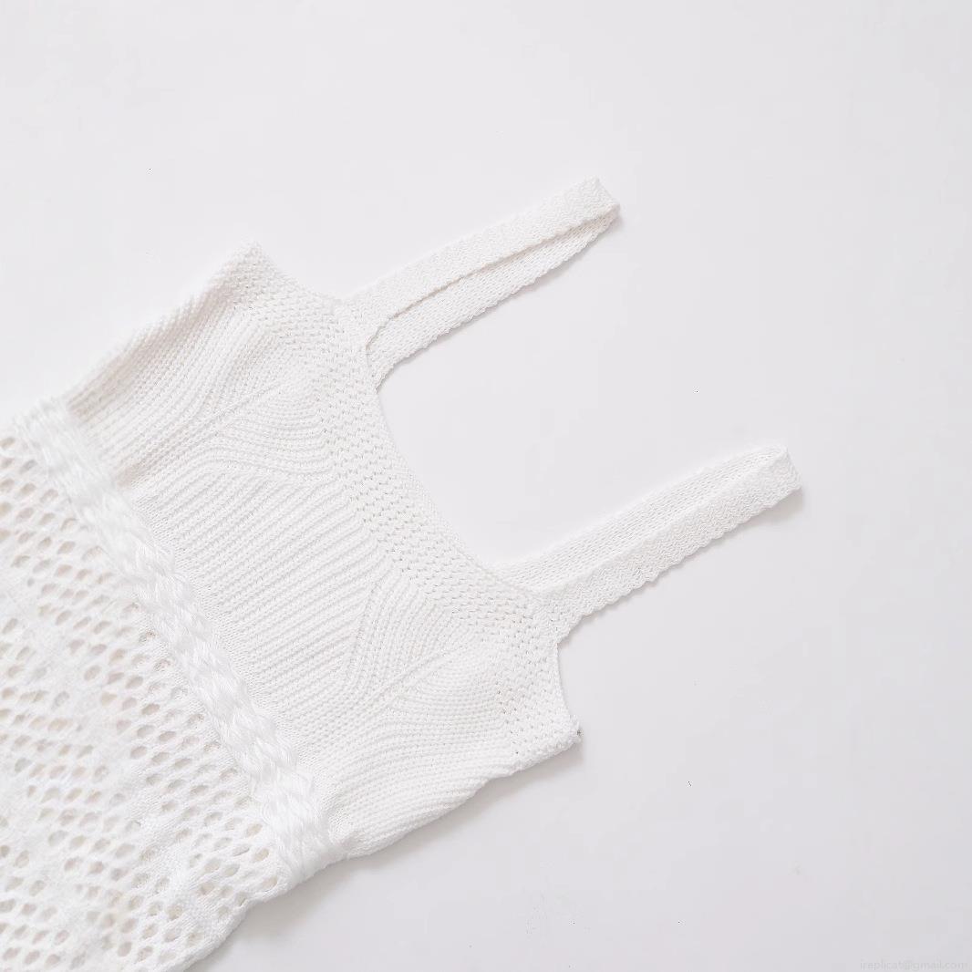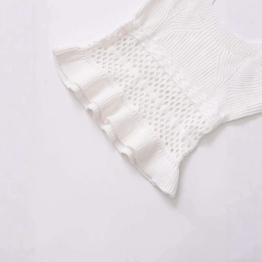 Women's Knit Tank Top Crochet Hollow Out Ruffle Hem Sleeveless Vest Top French Style Slim Fit Camisole For Summer Dating Party