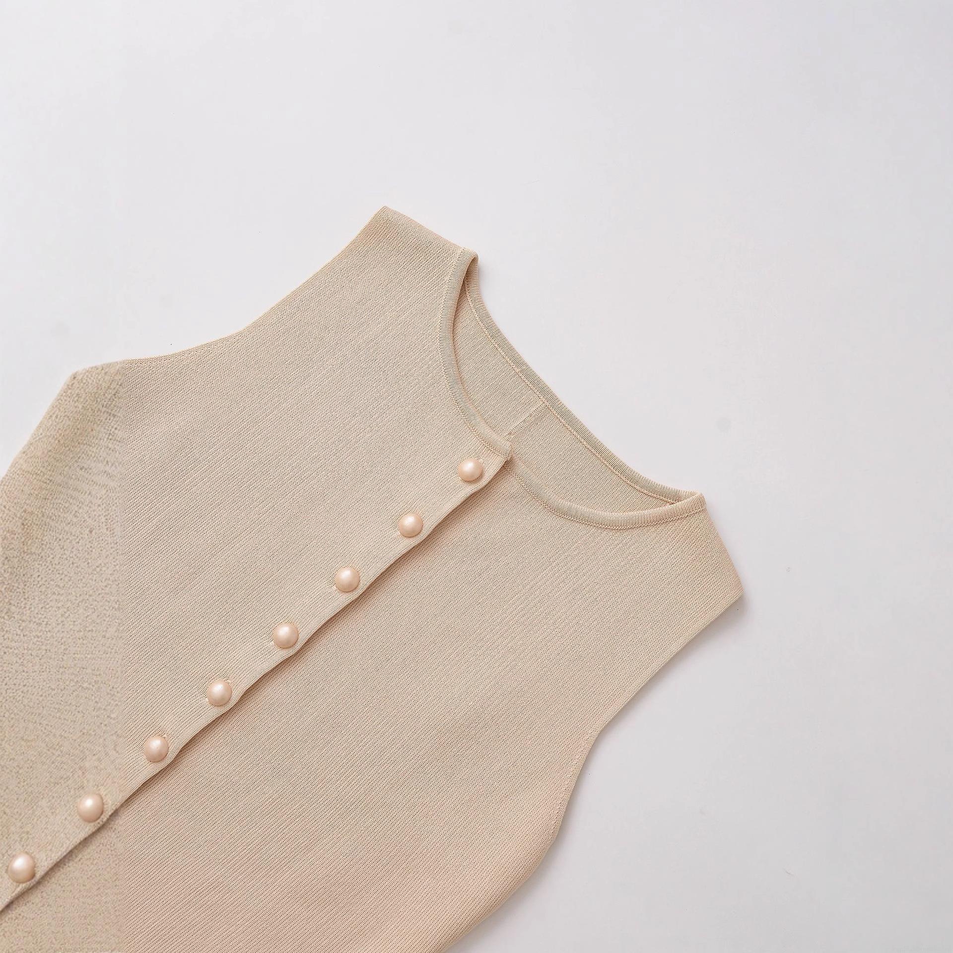 Solid Color, Ribbed Knit, Button Decoration, Vertical Pit Strip