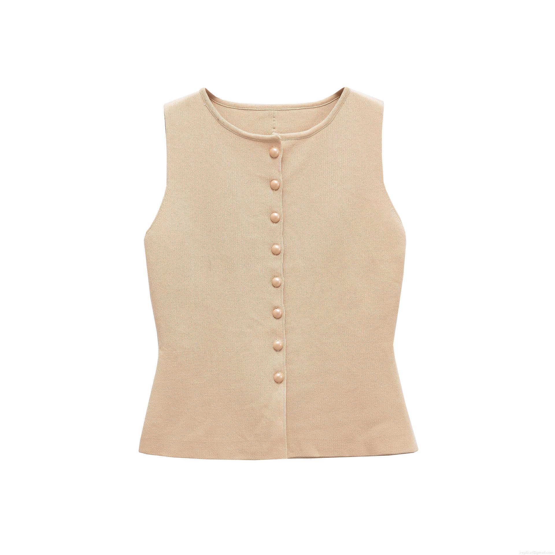 Women's Knit Tank Top Ribbed Polyester Button Front Sleeveless Round Neck Slim Fit Daily Casual Sleeveless Vest Top for Women