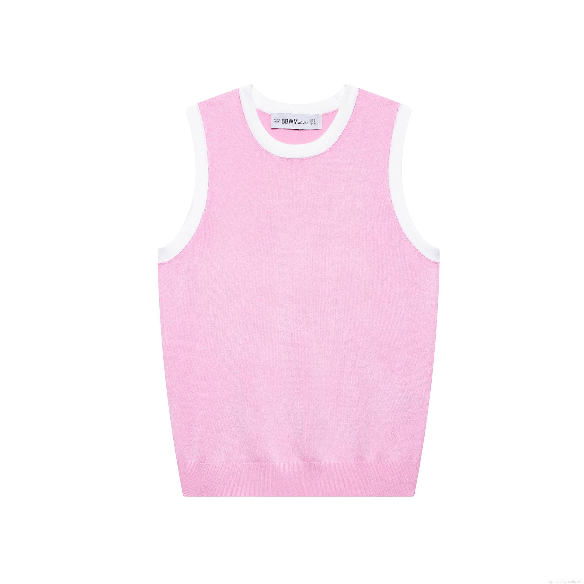 • Women's Knit Tank Top Sweet Contrast Trim Round Neck Sleeveless Vest Color Block Knitted Pullover Top For Summer Casual Daily Wear