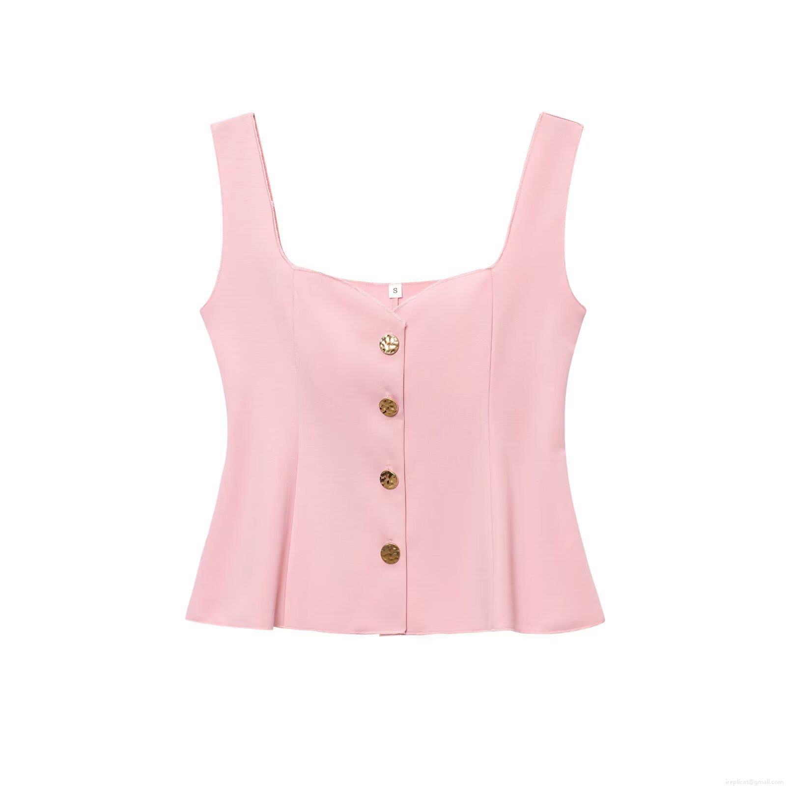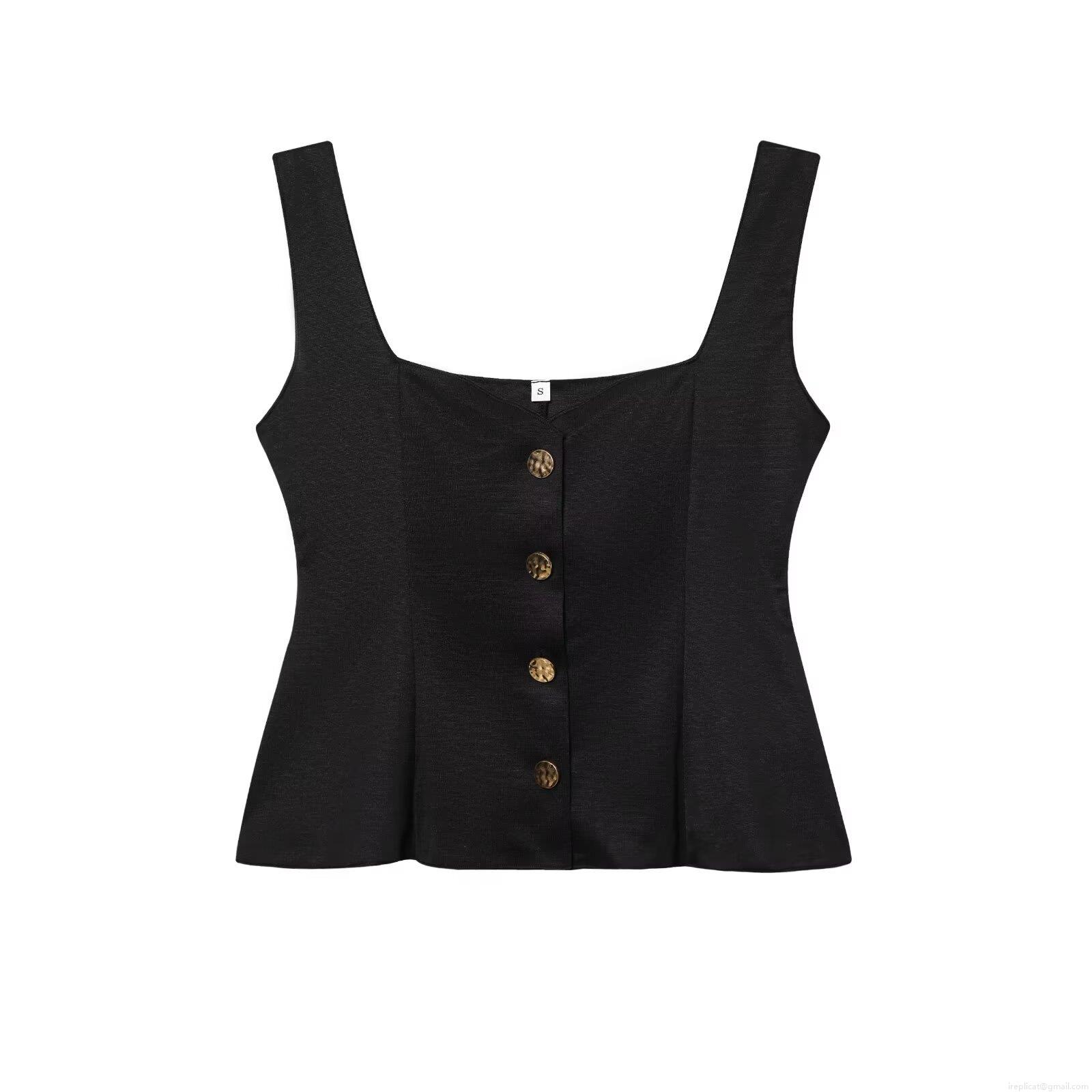 • Women's Knitted Cami Top Sexy Backless Square Neck Button Down Sleeveless Tank Top Solid Color Slim Fit Vest for Summer Streetwear