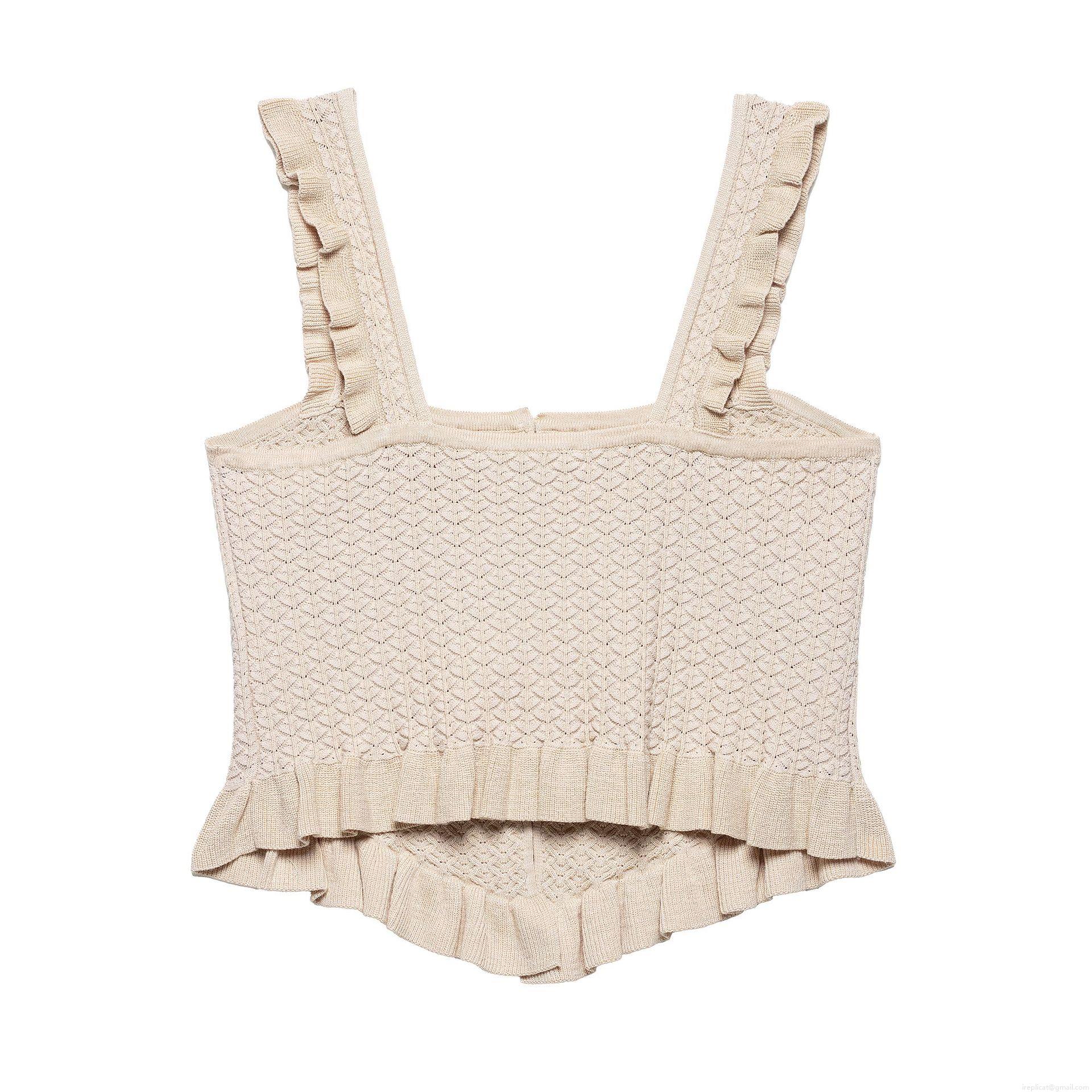 • Women's Knitted Camisole Tank Top 100% Polyester Crochet Square Neck Ruffle Straps Single Breasted Button Down Crop Top For Daily Date Summer Streetwear