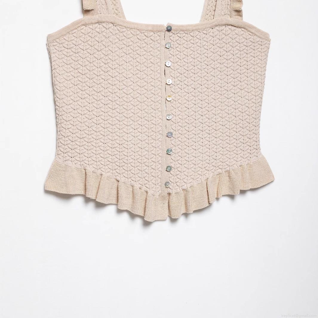 Women's Knitted Camisole Tank Top 100% Polyester Crochet Square Neck Ruffle Straps Single Breasted Button Down Crop Top For Daily Date Summer Streetwear