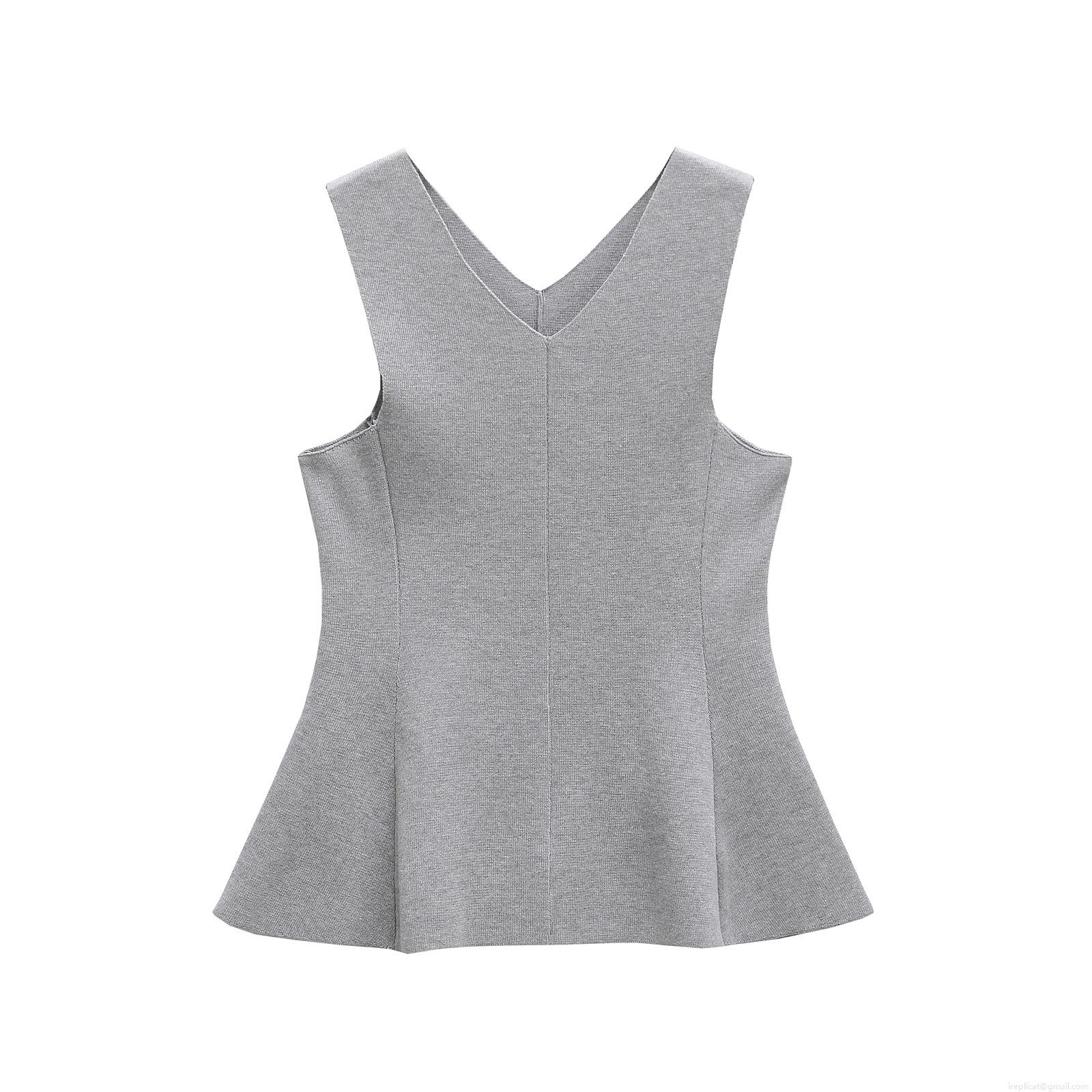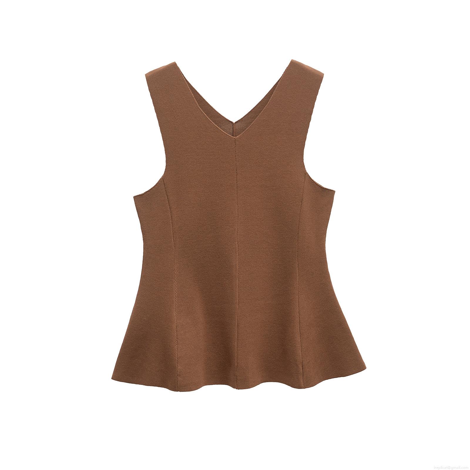 • Women's Knitted V-Neck Sleeveless Tank Top Sexy Peplum Hem Slim Fit Polyester Vest Shirt For Summer Daily Streetwear Chic Solid Color Top