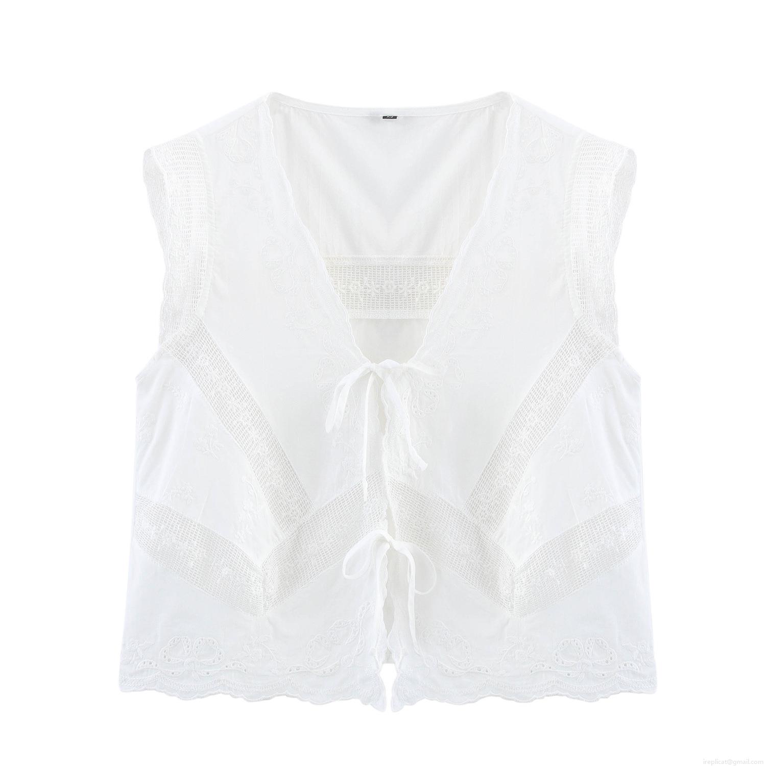 • Women's Lace Embroidery Tank Top Cotton Blend V-Neck Bow Tie Sleeveless Vest Vintage Hollow Out Boho Style Summer Camisole For Women Daily Casual