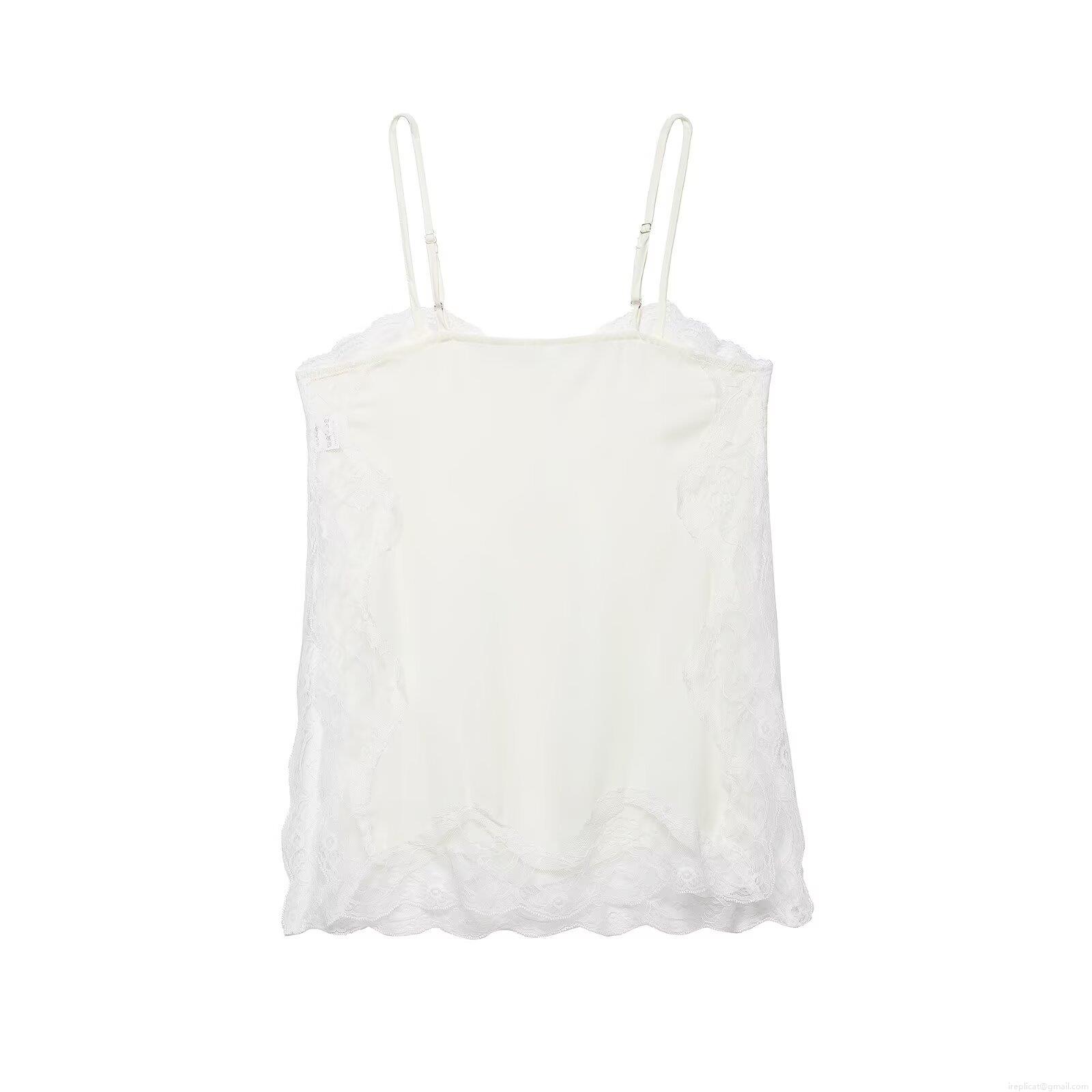 Solid Color, Lace Patchwork, Thin Shoulder Straps, Satin Feel