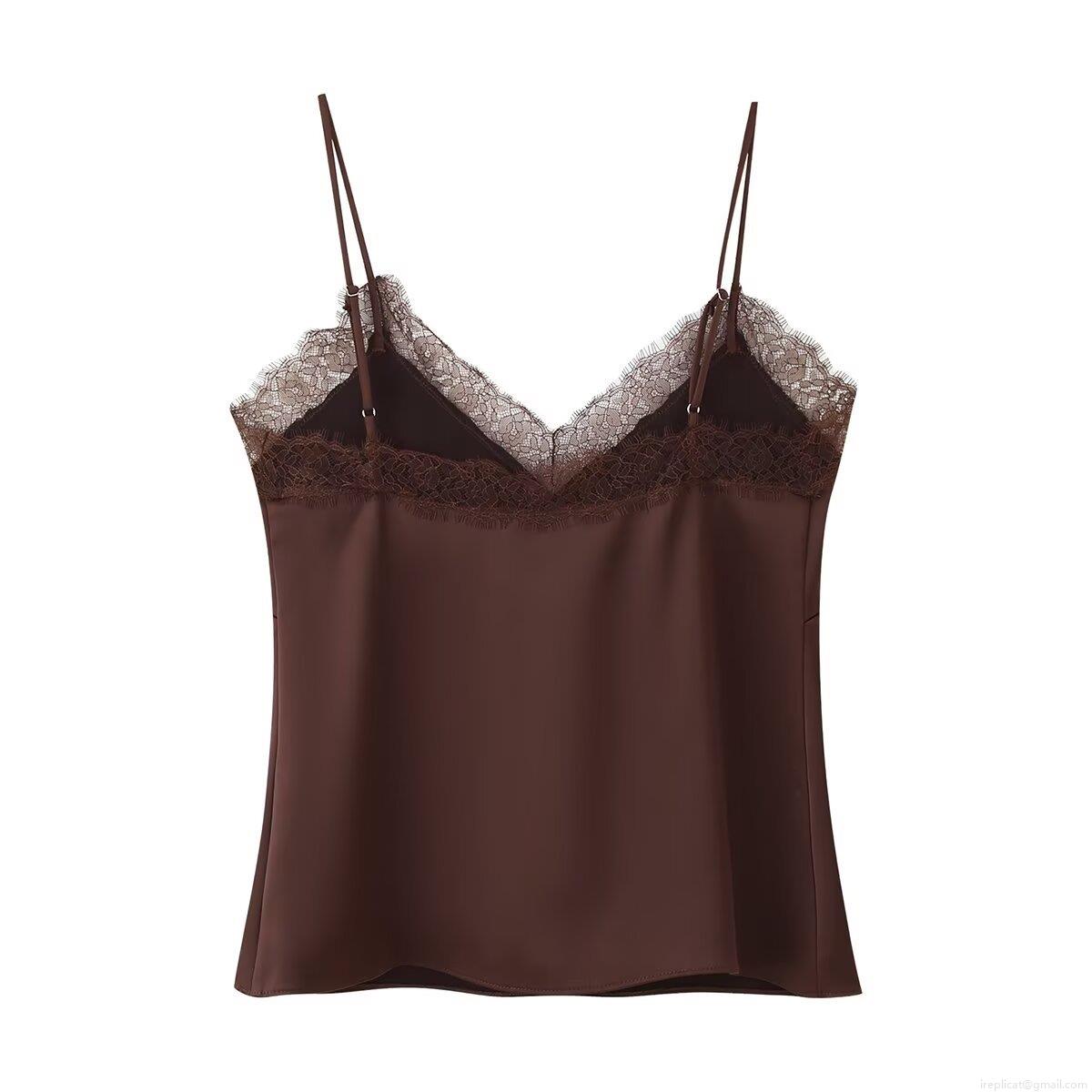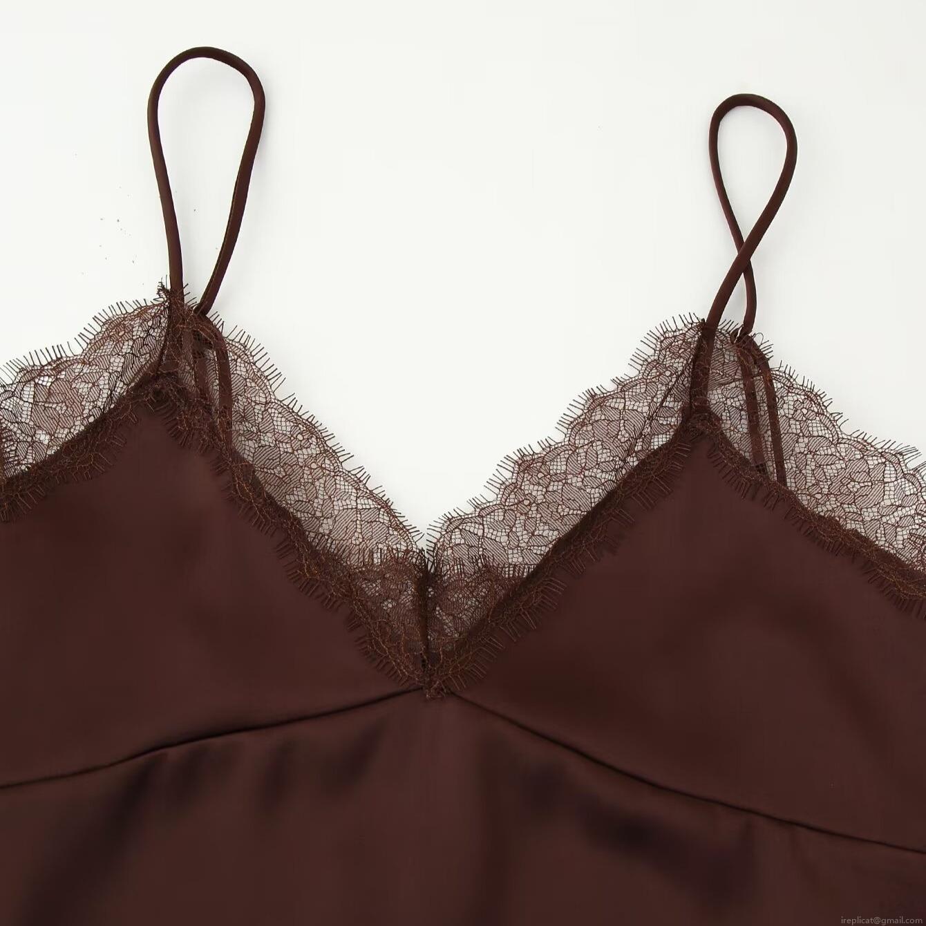 Solid Color, Lace Patchwork, Thin Shoulder Straps, Silk Satin Texture